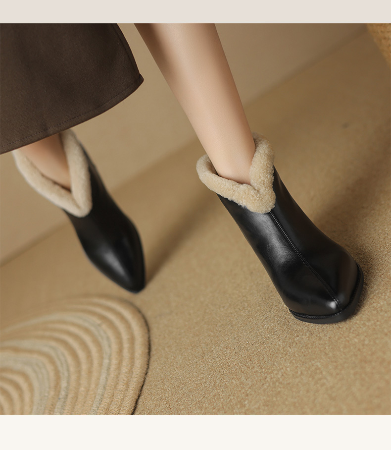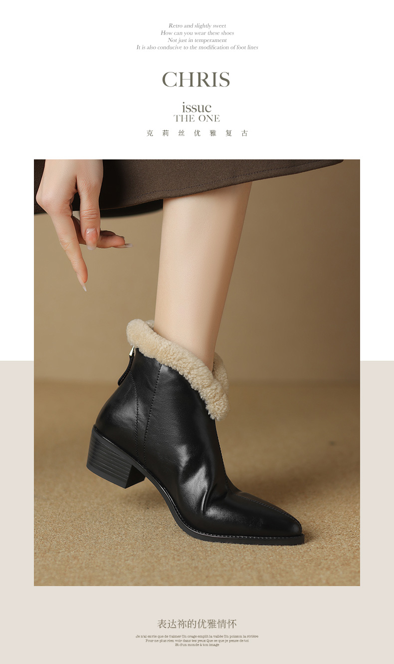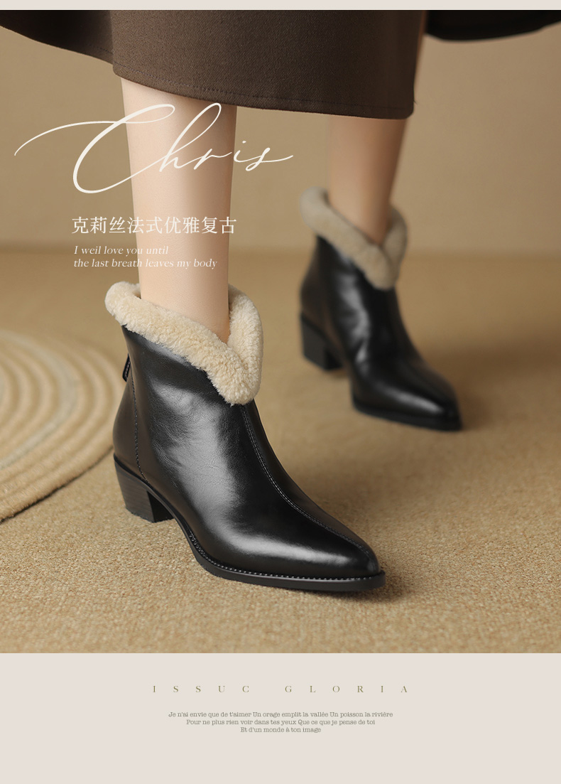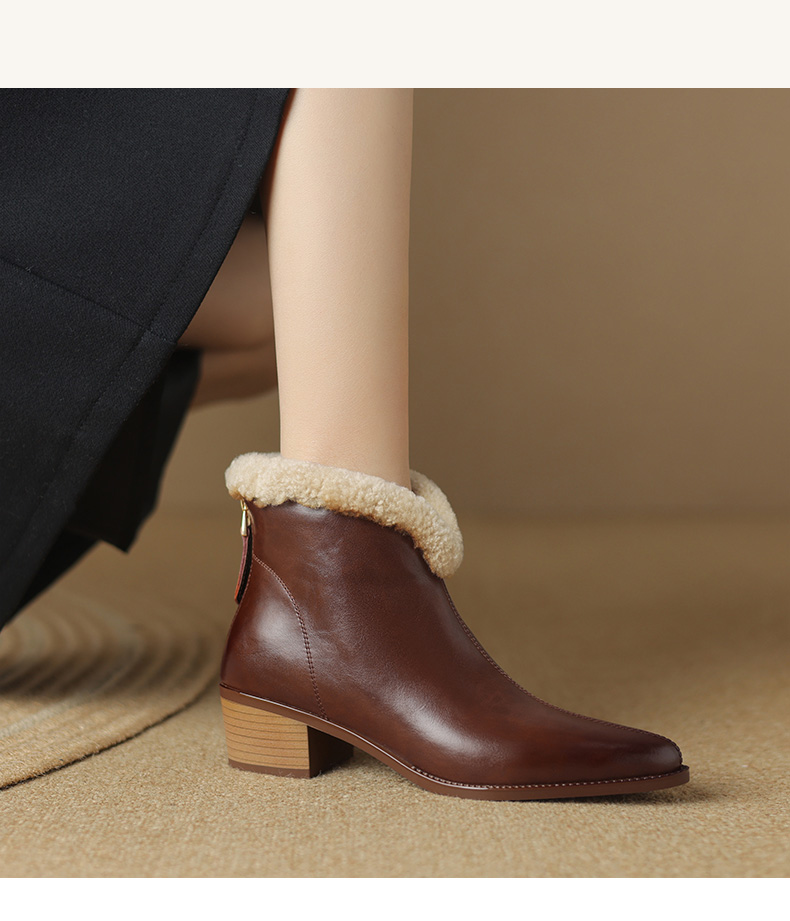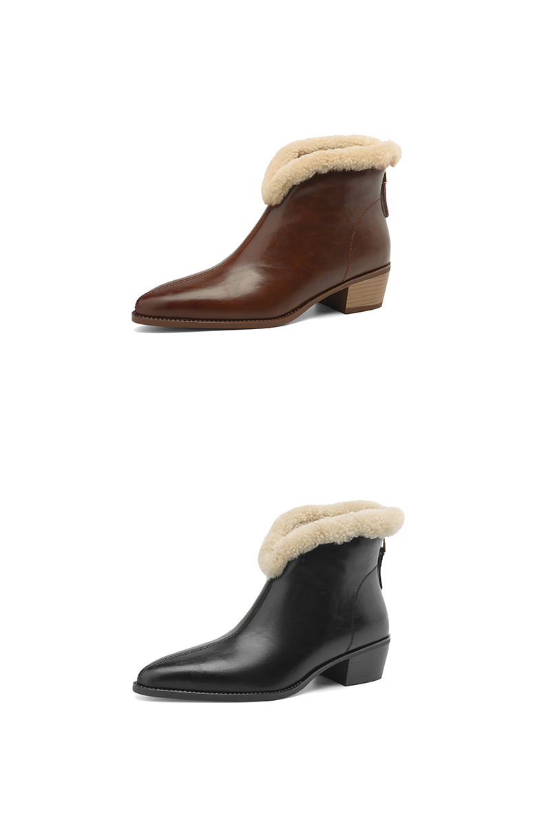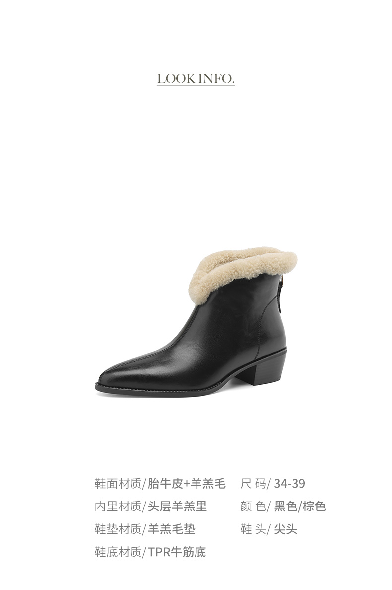 冬季新款,粗跟全真毛羊羔毛短靴LD-6640