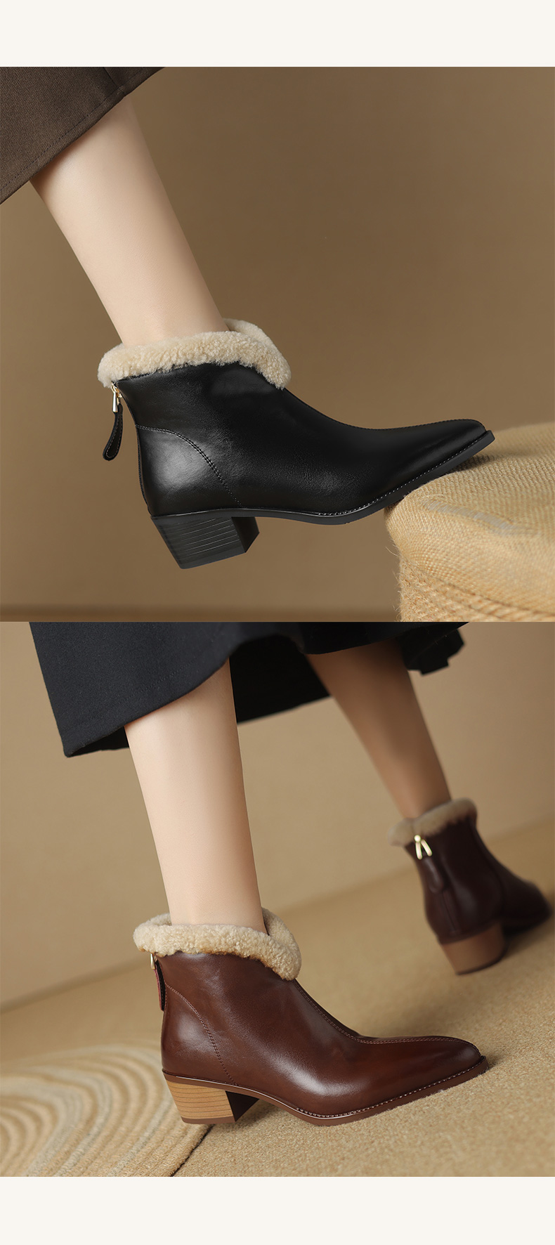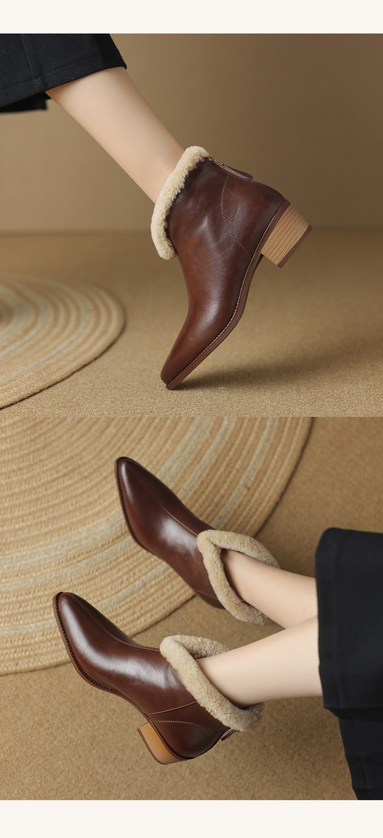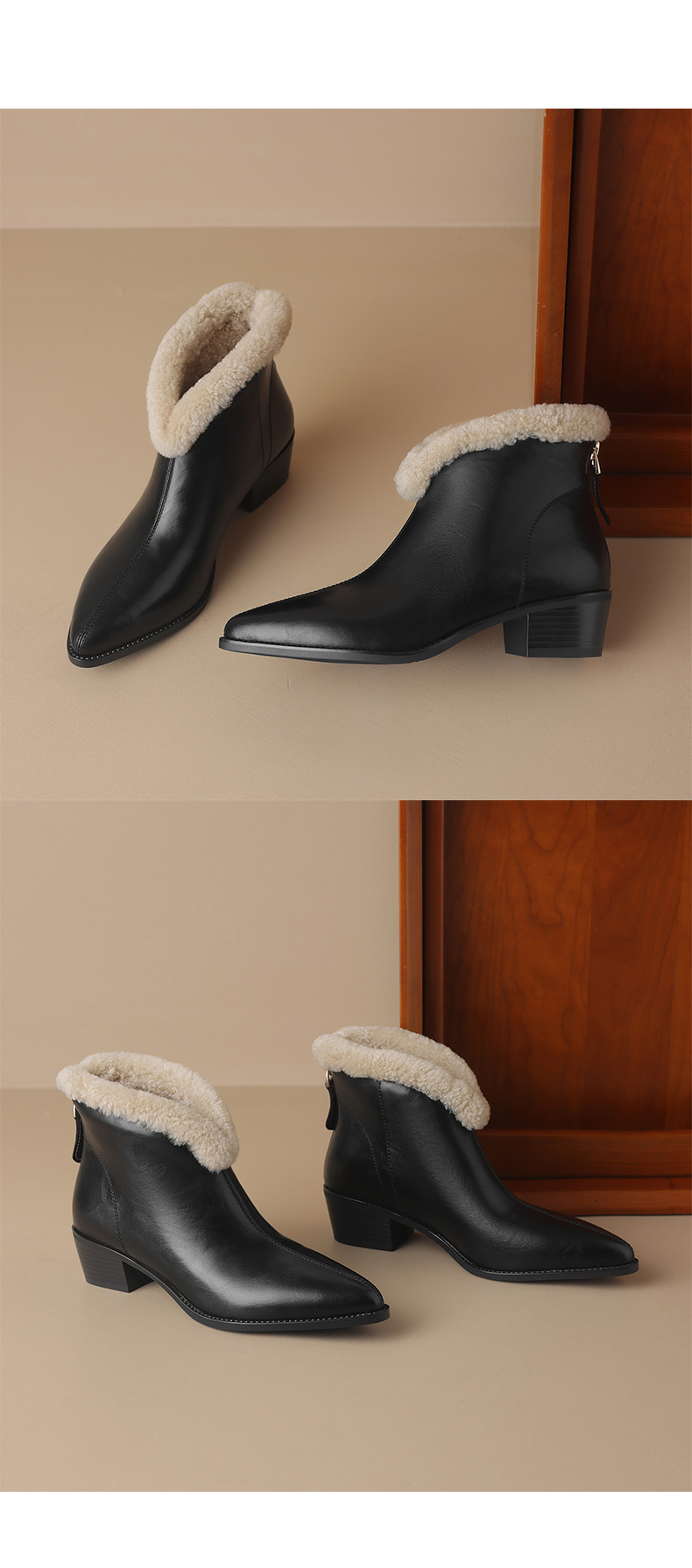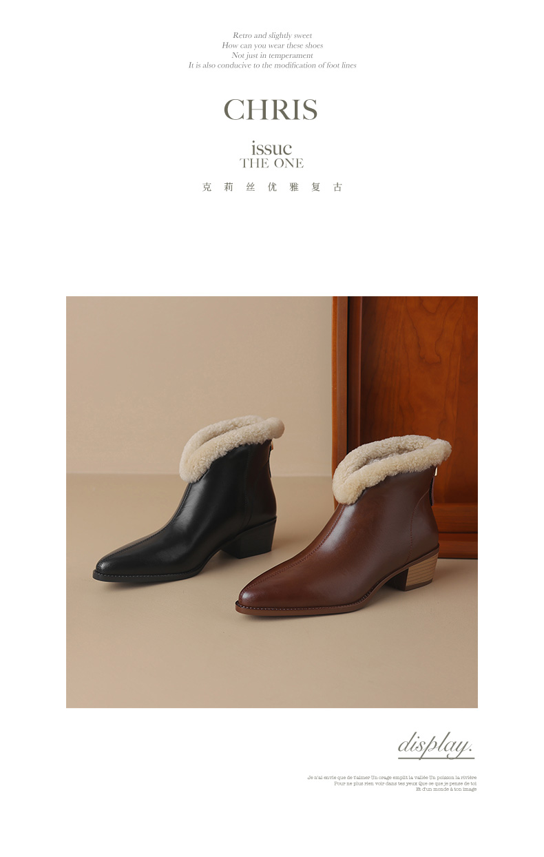 冬季新款,粗跟全真毛羊羔毛短靴LD-6640
