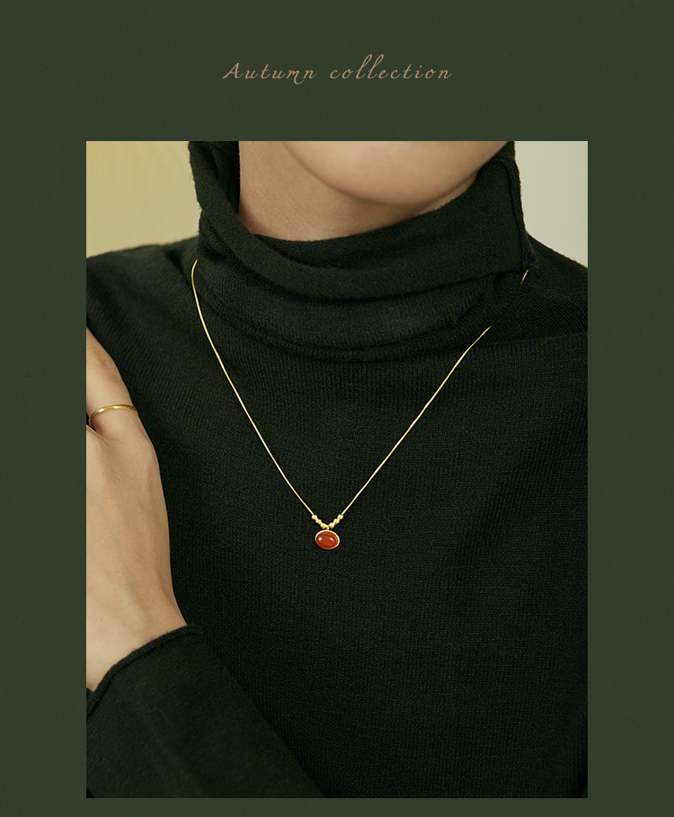 Oflye潮流饰品  S925银红玛瑙轻奢高级感项链新年新款设计感百搭项链 商品图0
