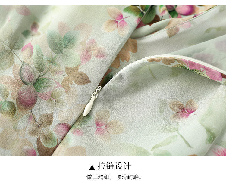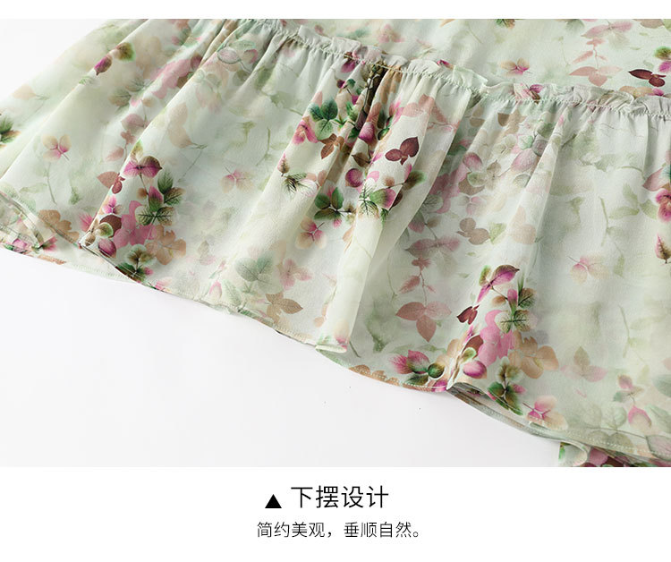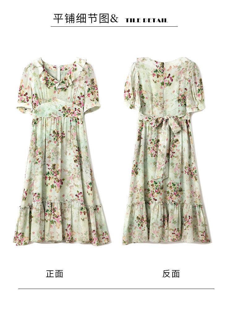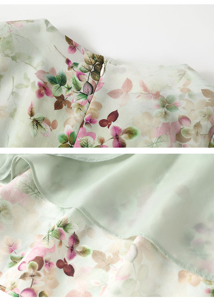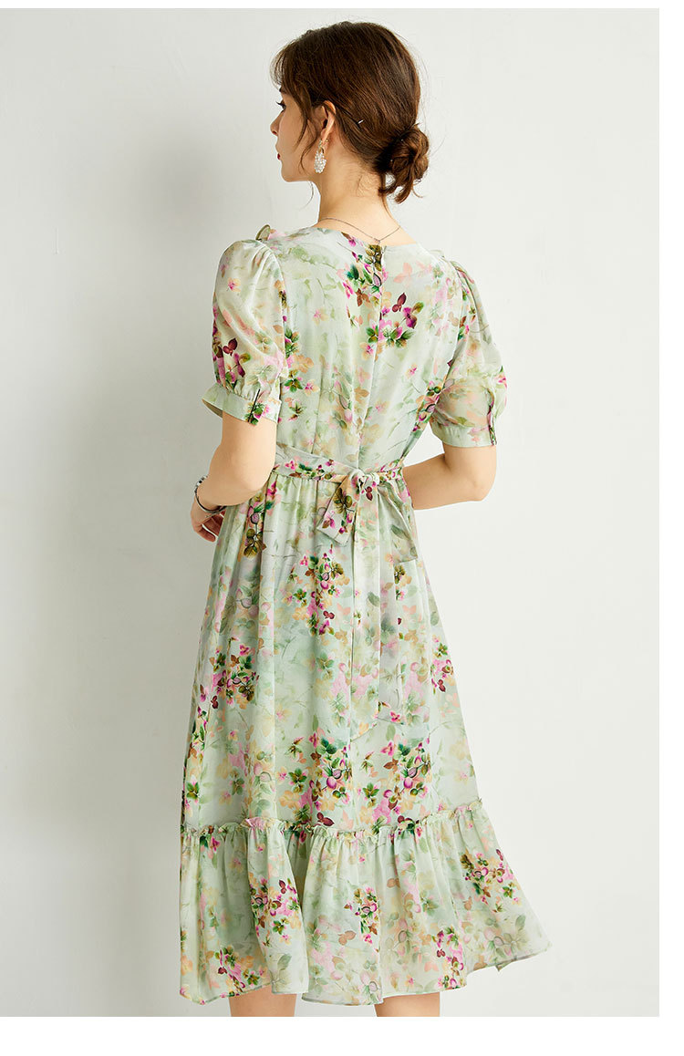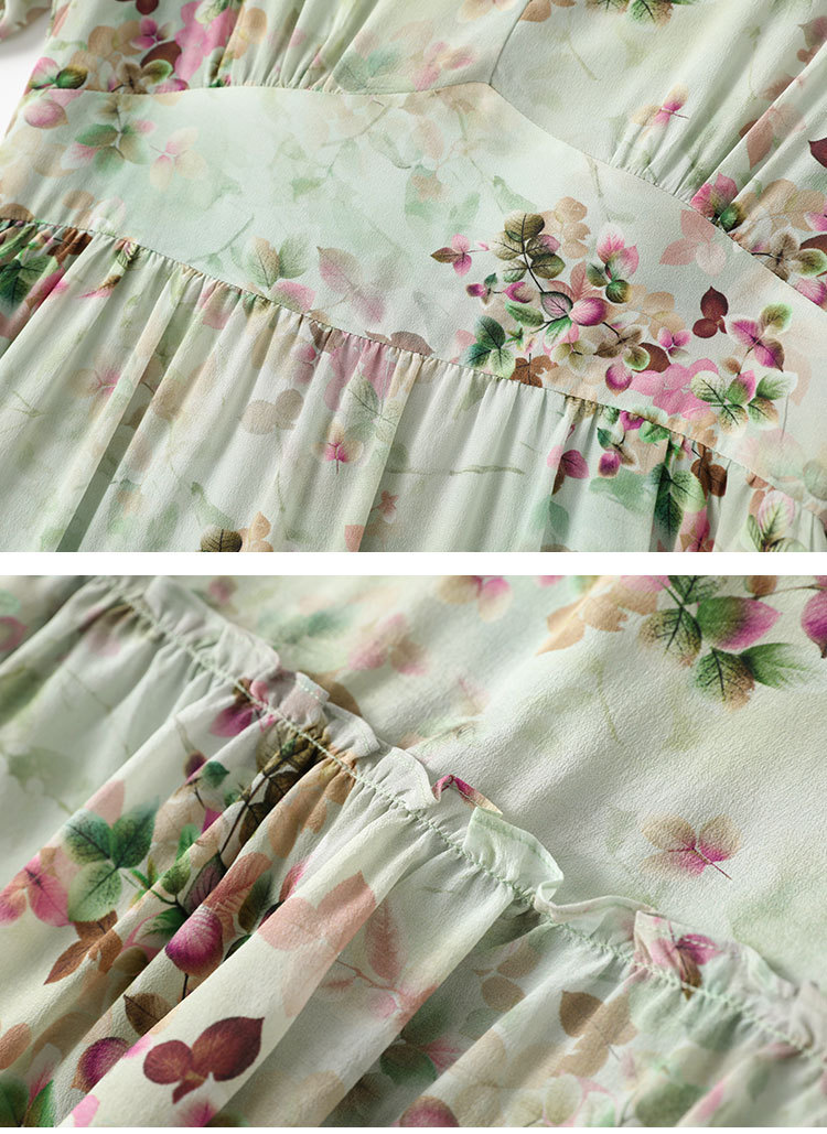 V字领时尚显瘦荷叶边,真丝桑蚕丝连衣裙KBN-230129