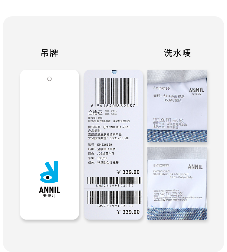 男女童全腰牛仔单裤夏季新款安奈儿童装EM526199