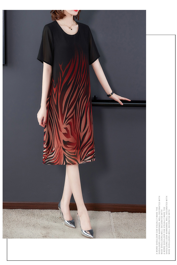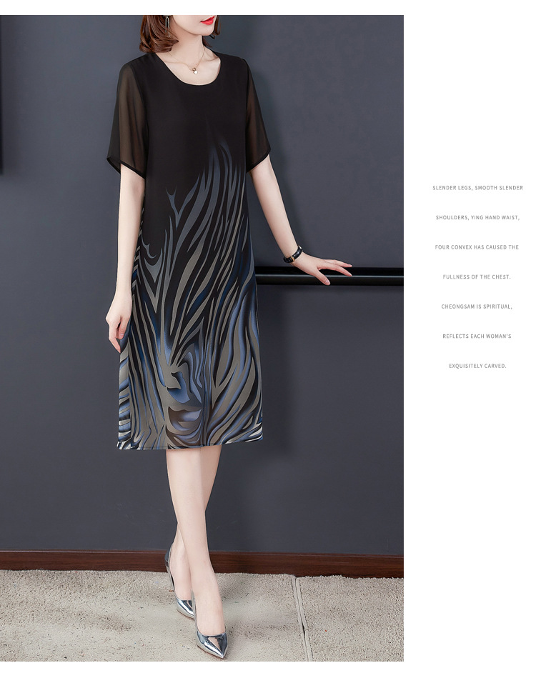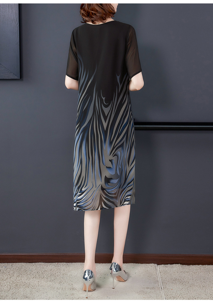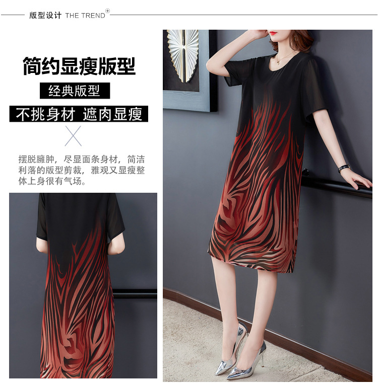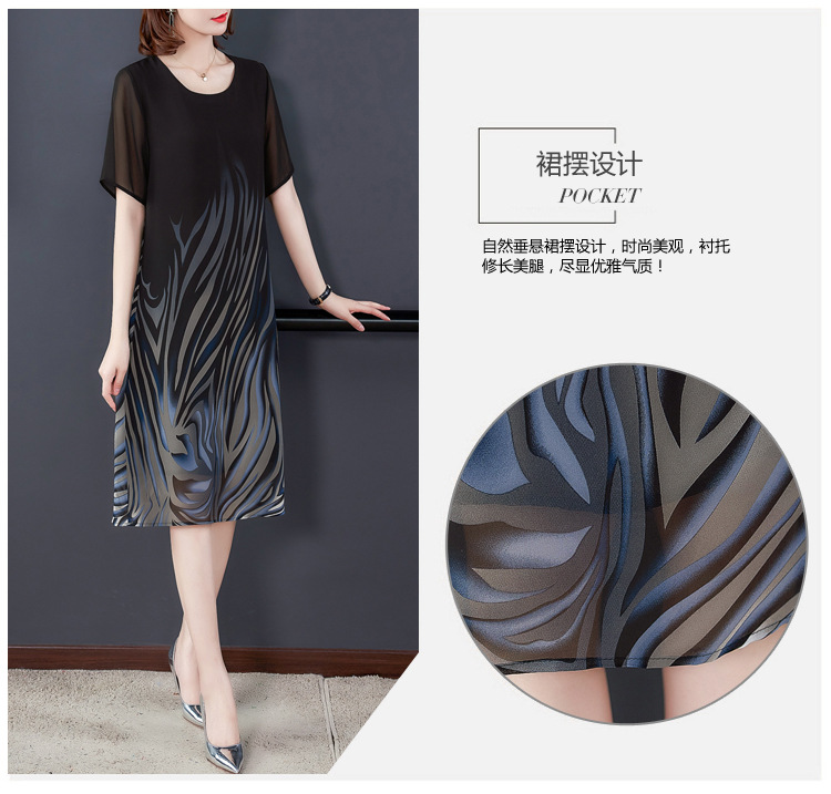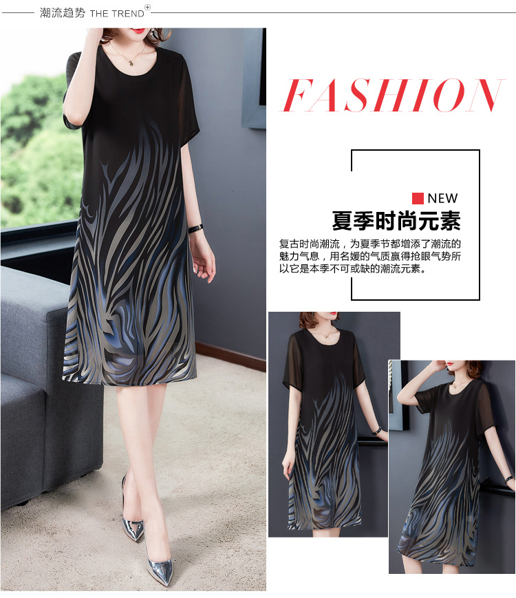 NYL-292608新款中老年贵夫人洋气雪纺印花连衣裙