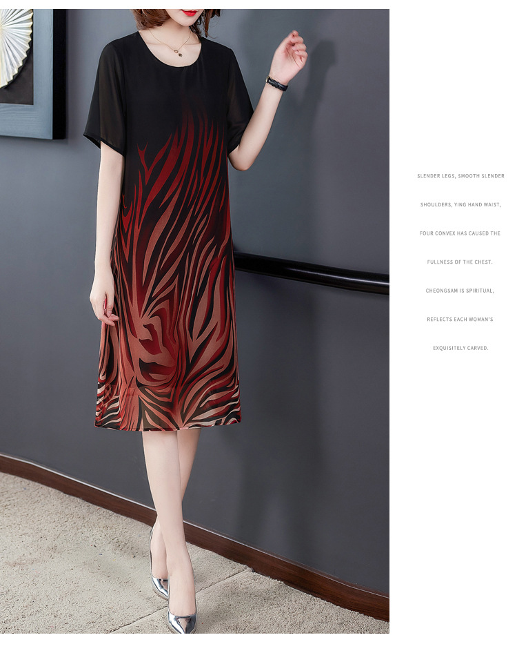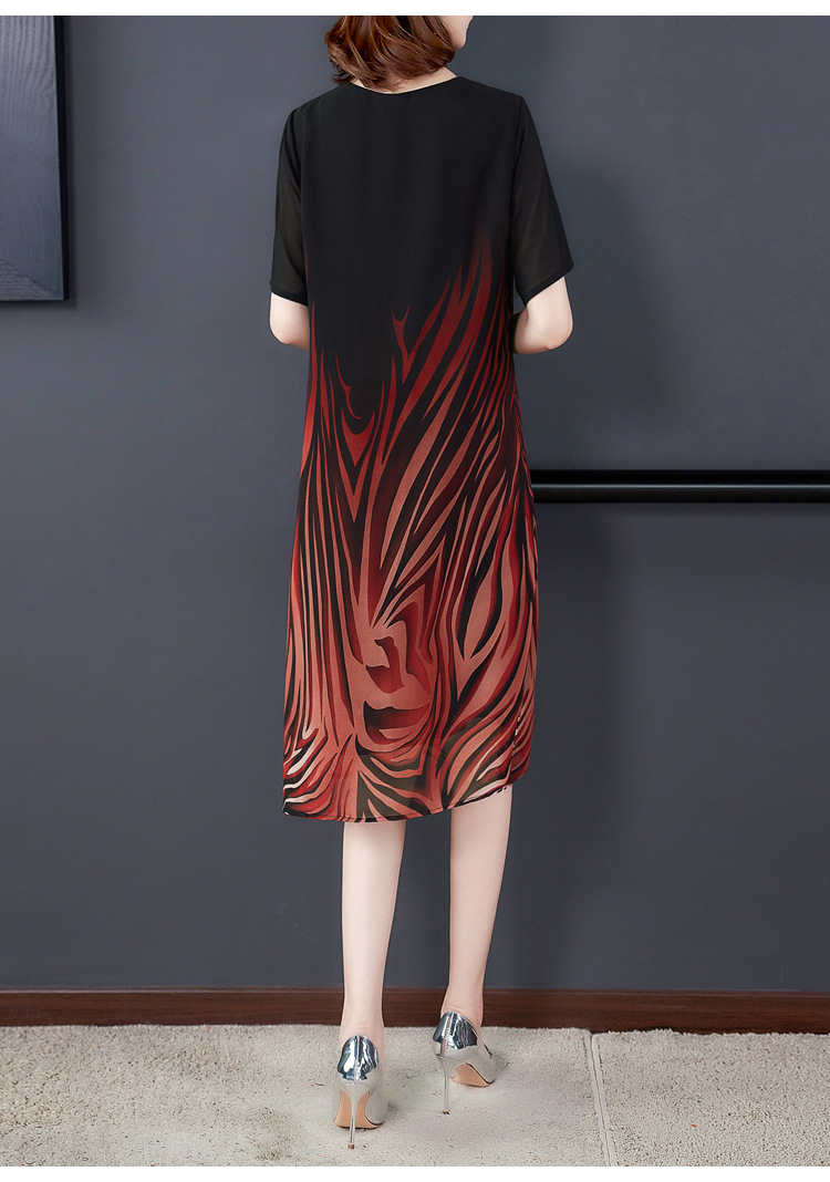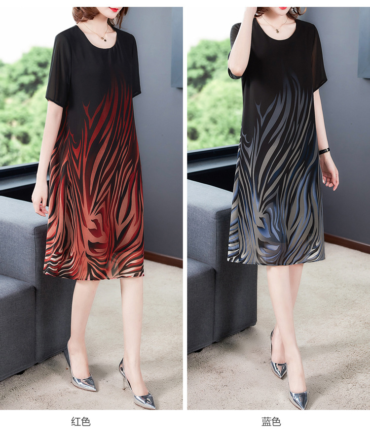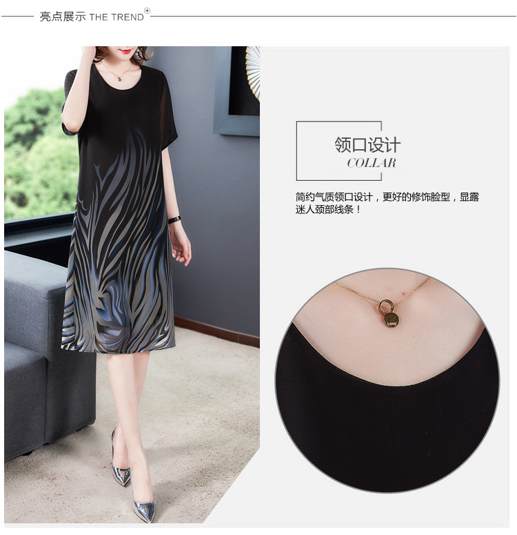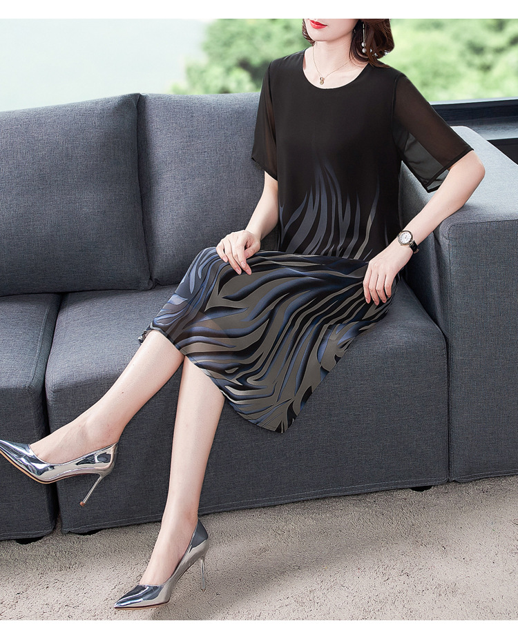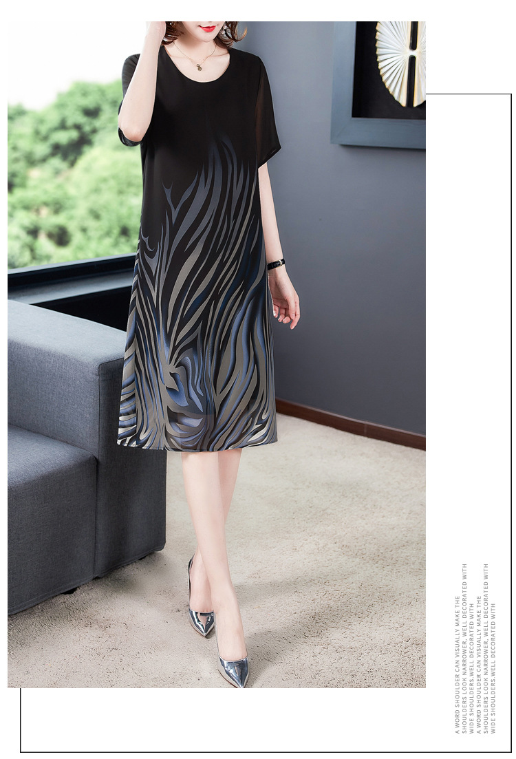 NYL-292608新款中老年贵夫人洋气雪纺印花连衣裙