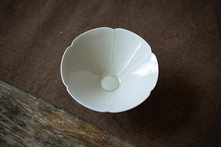 以花瓣为口沿装饰,六道出筋,简约挺拔。