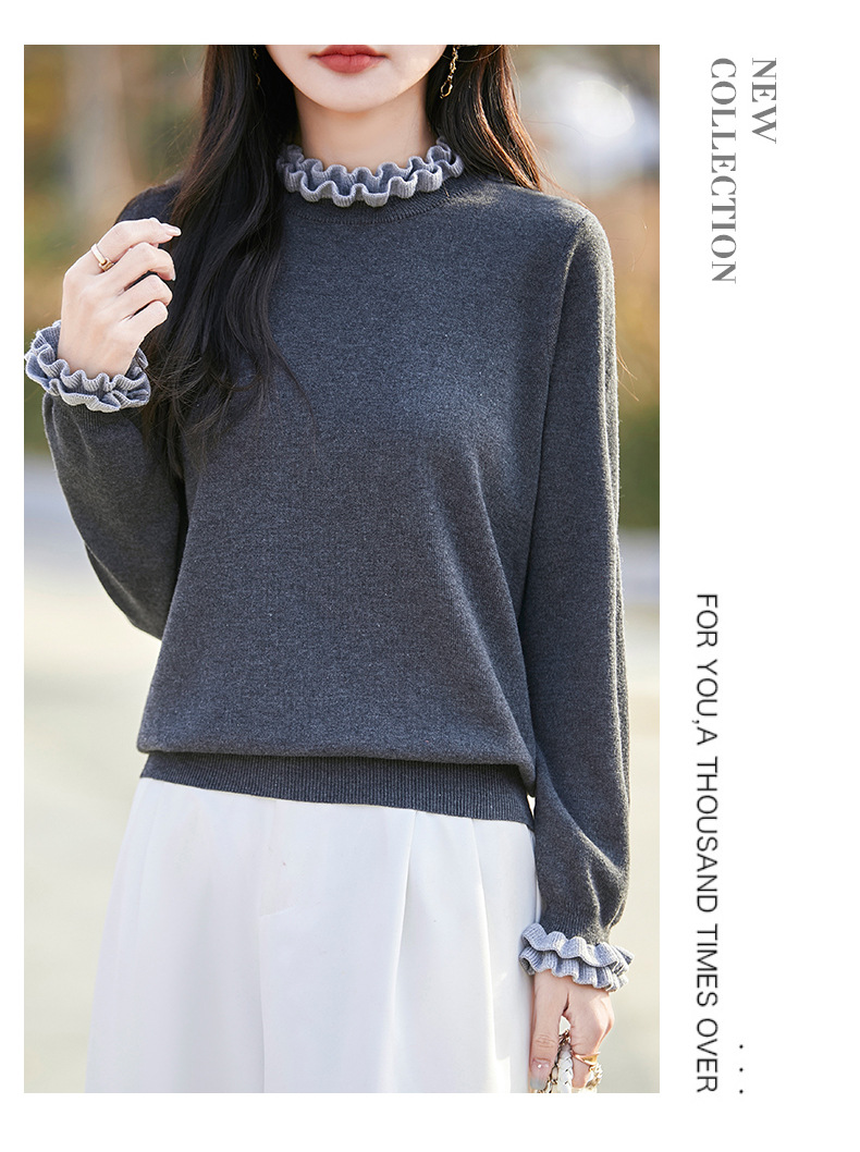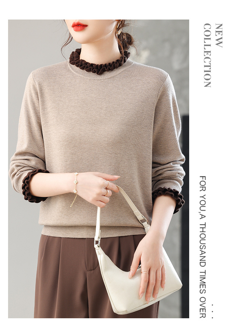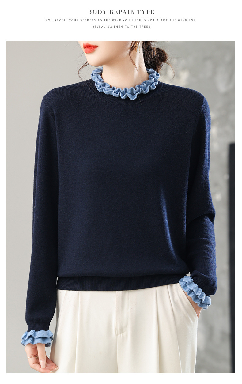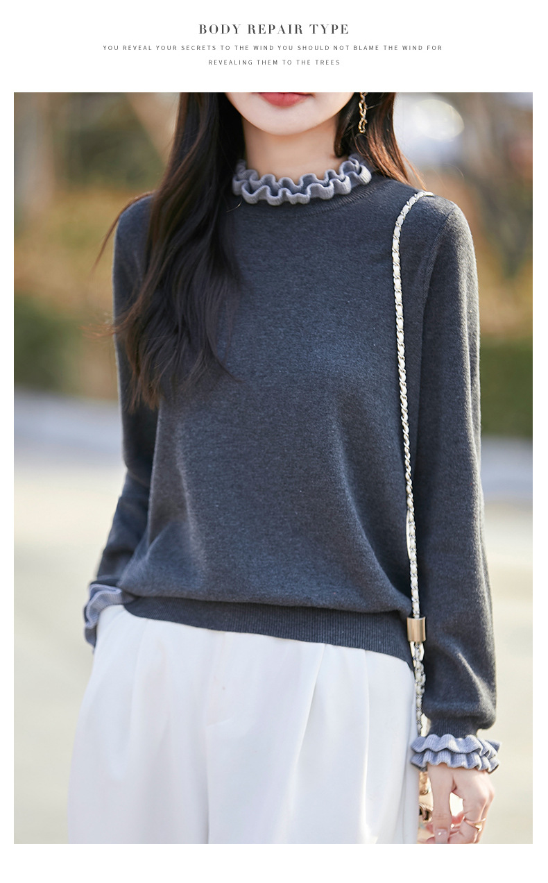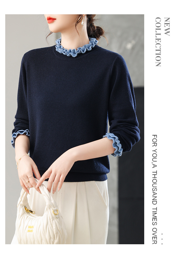 CC木耳边撞色针织衫气质上衣秋装2025新款女装早秋薄款洋气打底毛衣