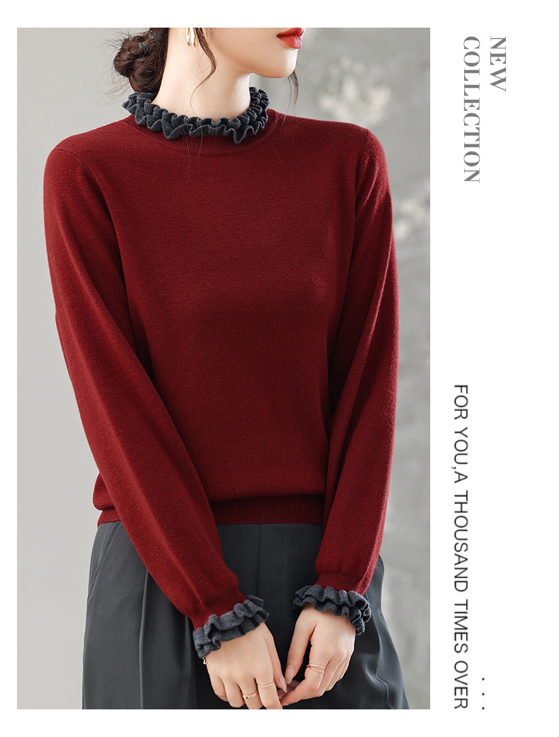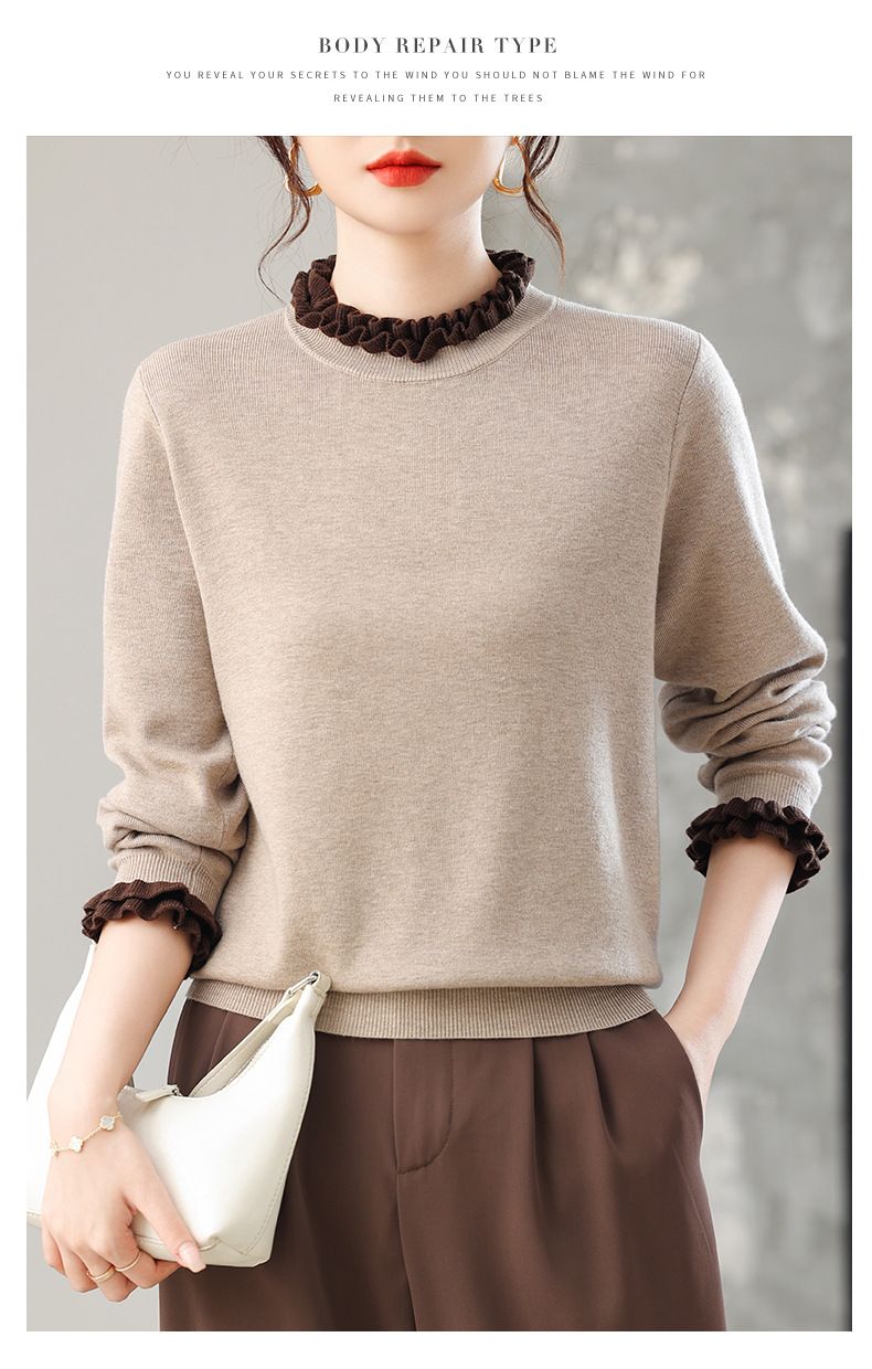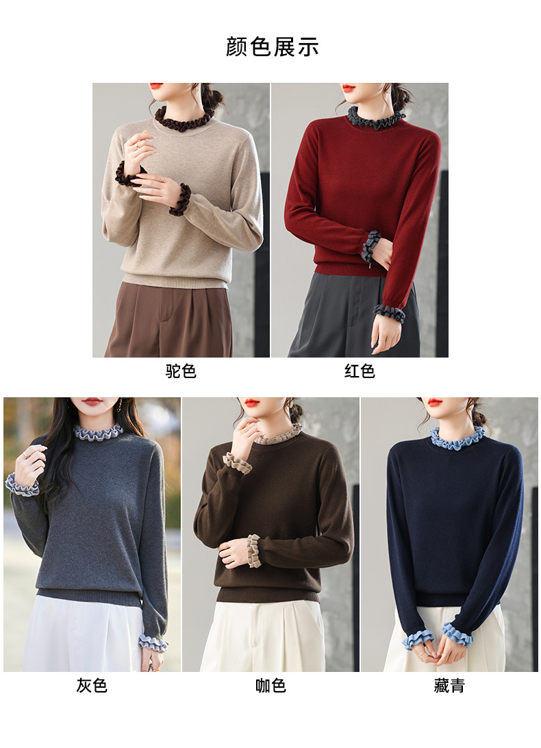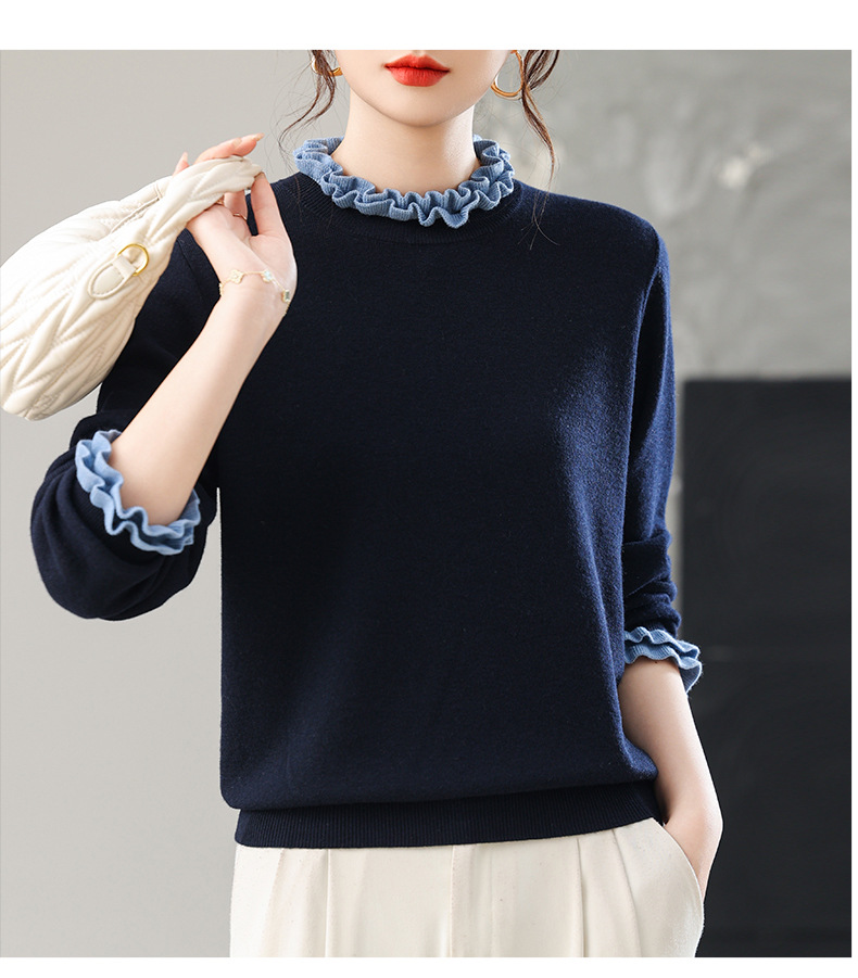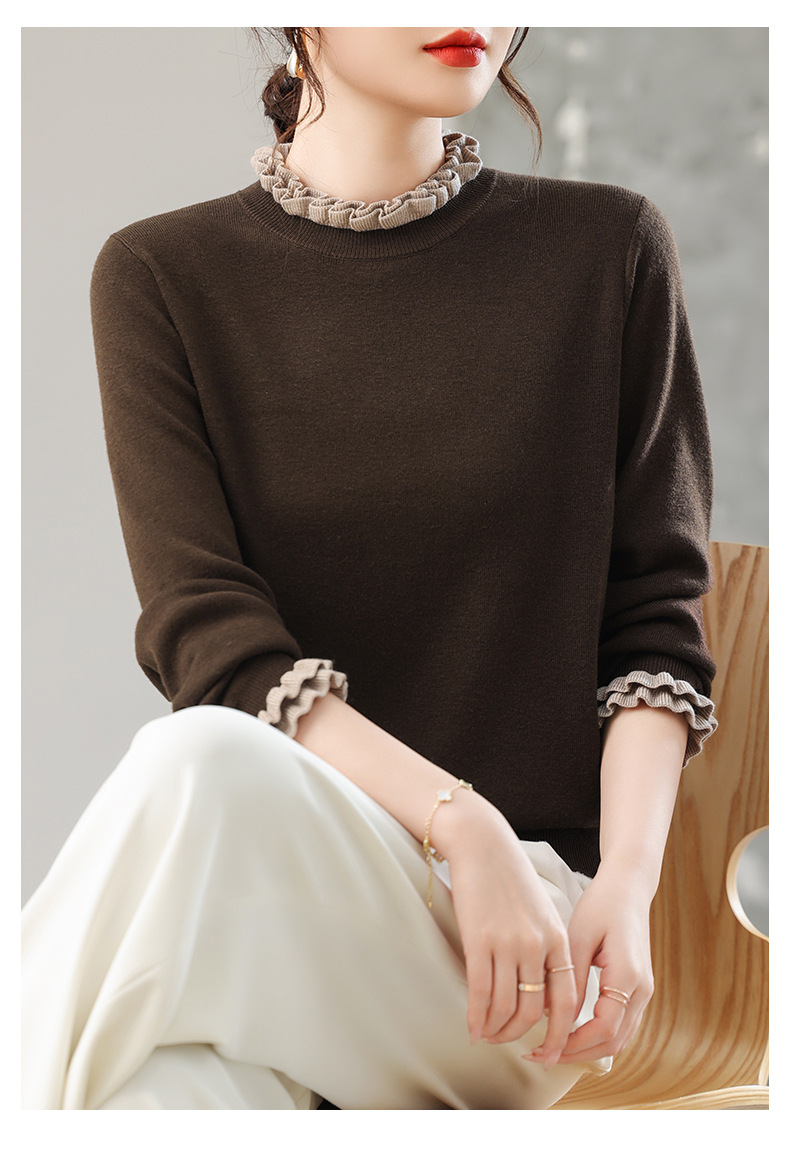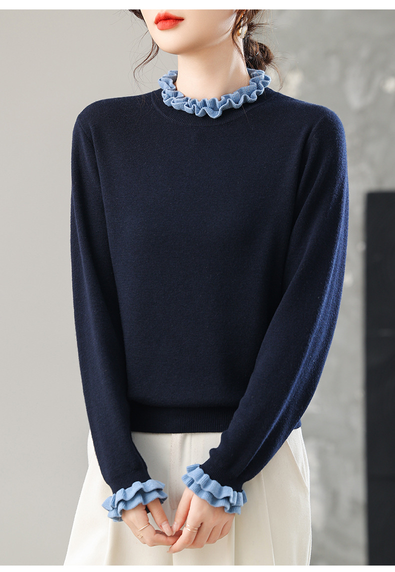 CC木耳边撞色针织衫气质上衣秋装2025新款女装早秋薄款洋气打底毛衣