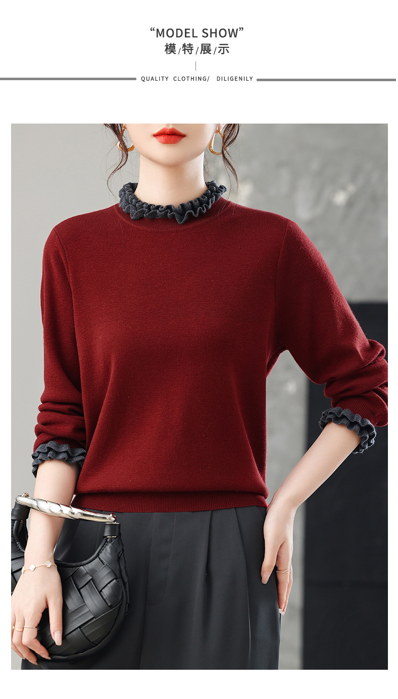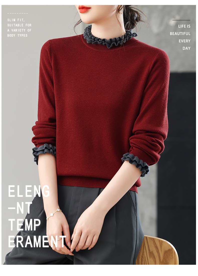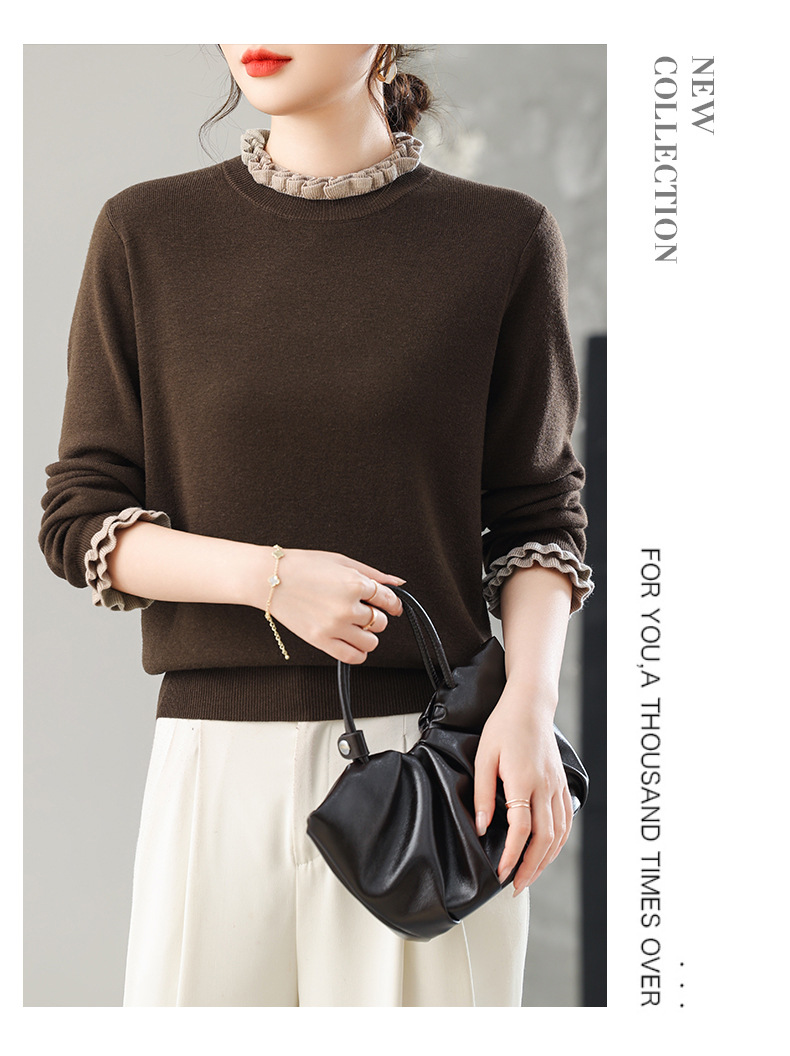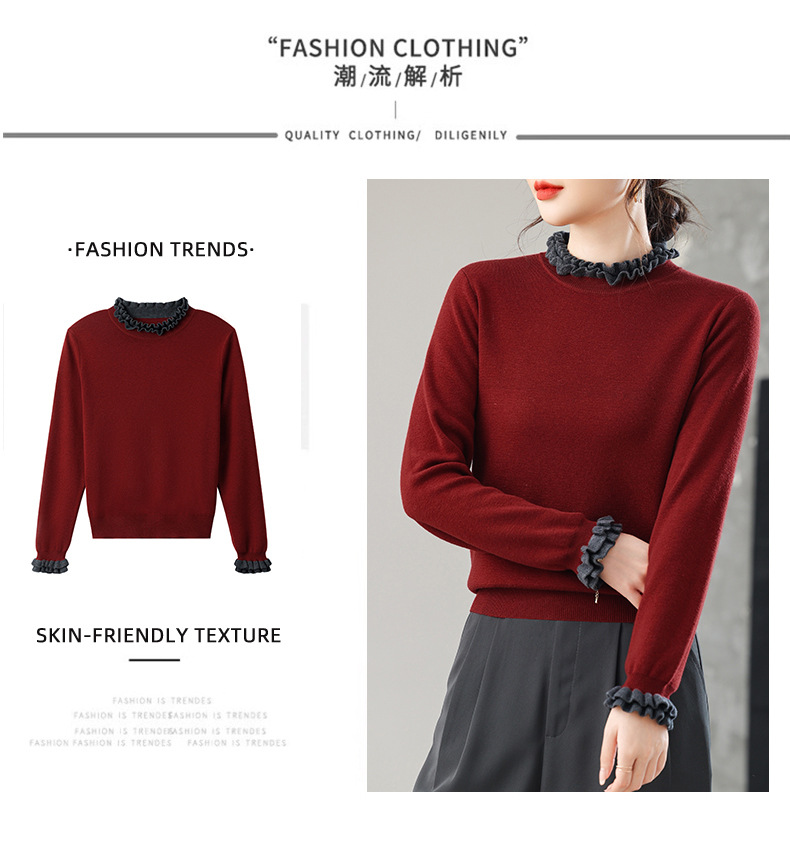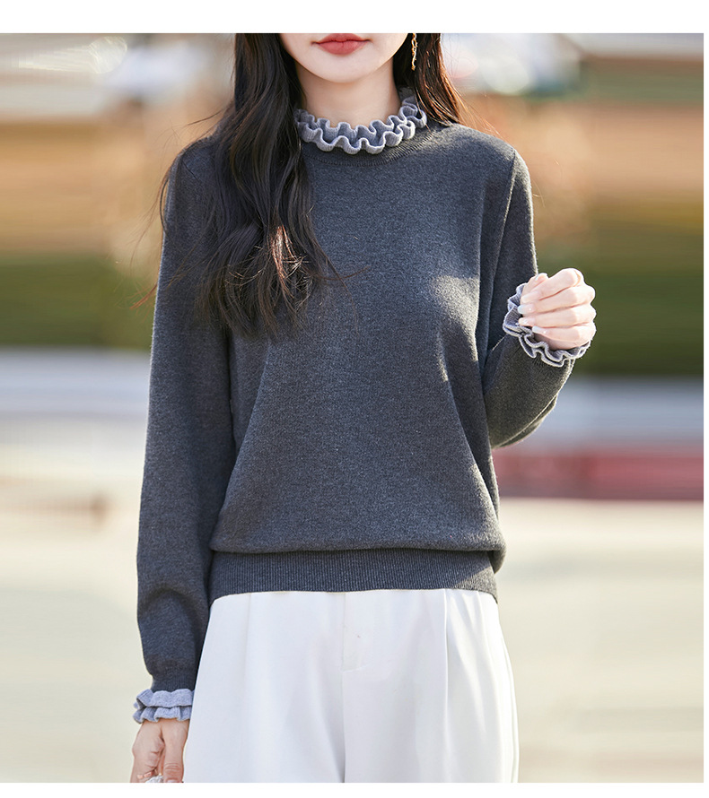 CC木耳边撞色针织衫气质上衣秋装2025新款女装早秋薄款洋气打底毛衣