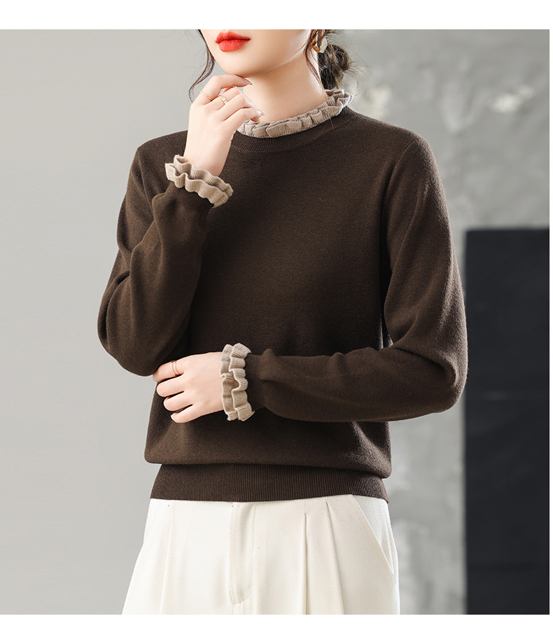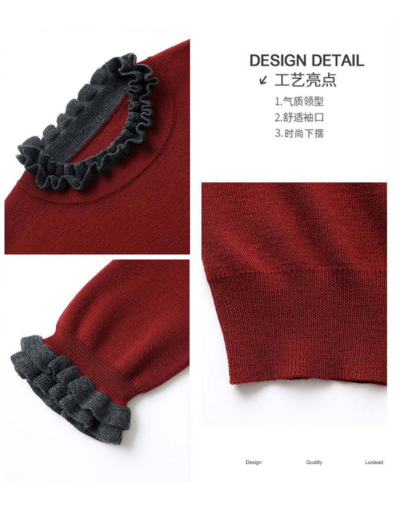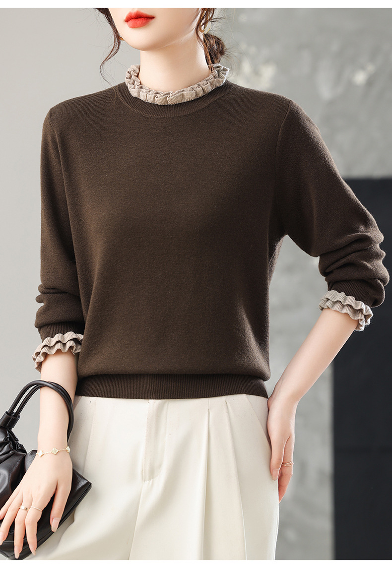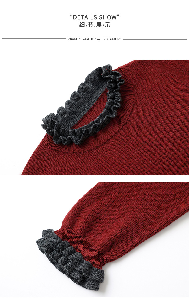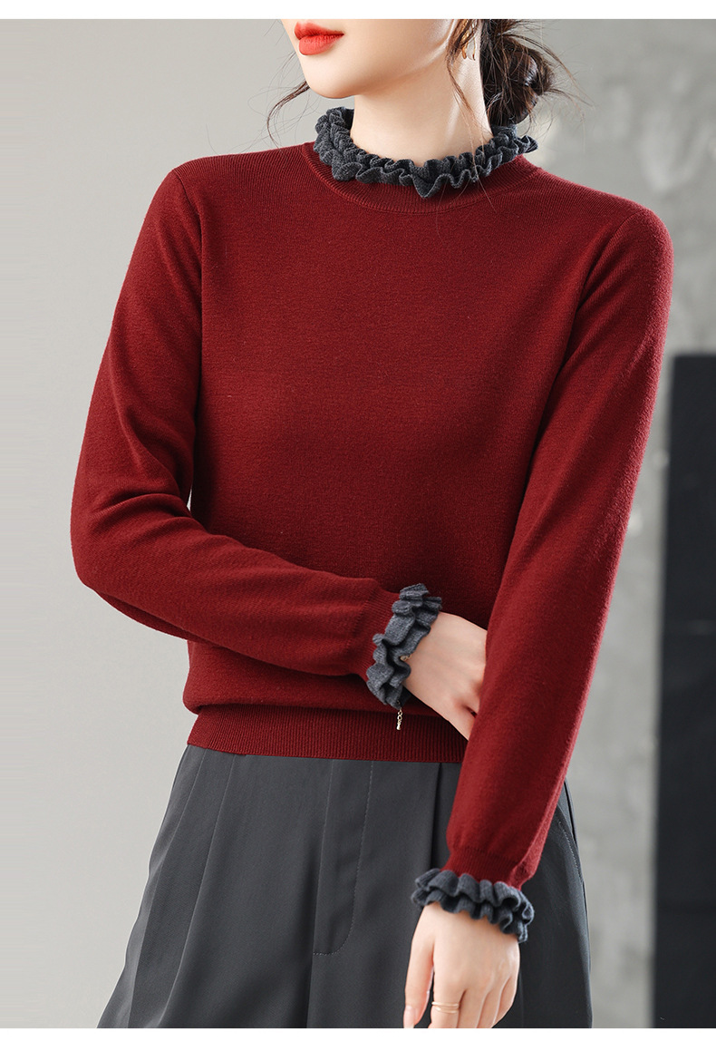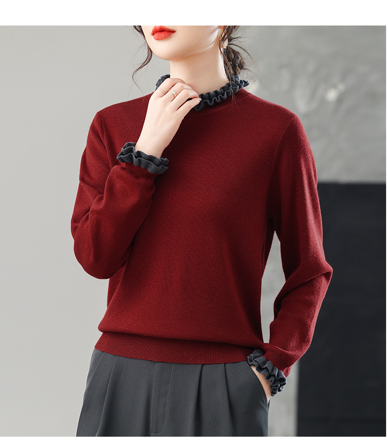 CC木耳边撞色针织衫气质上衣秋装2025新款女装早秋薄款洋气打底毛衣