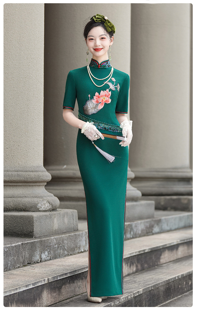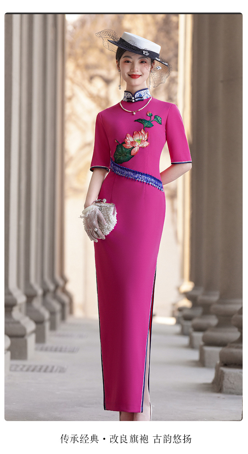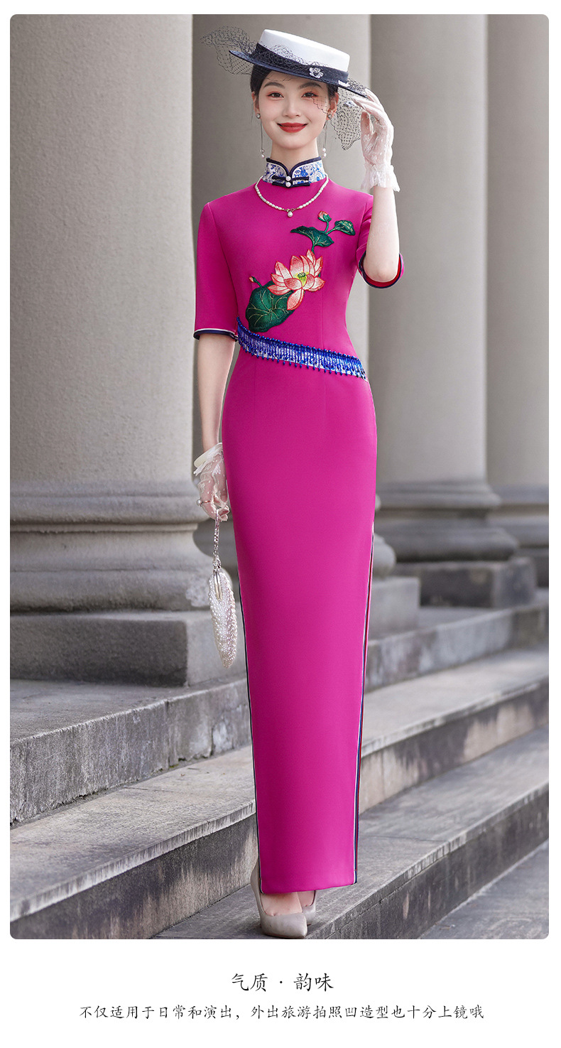 长款走秀旗袍2025夏季新款演出旗袍连衣裙年轻款复古修身气质旗袍