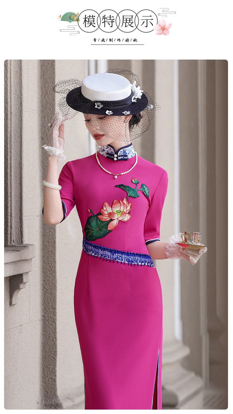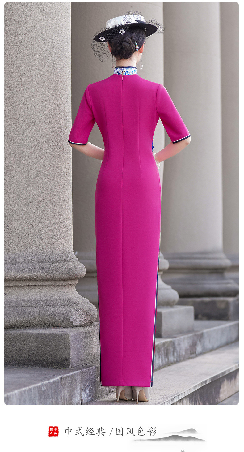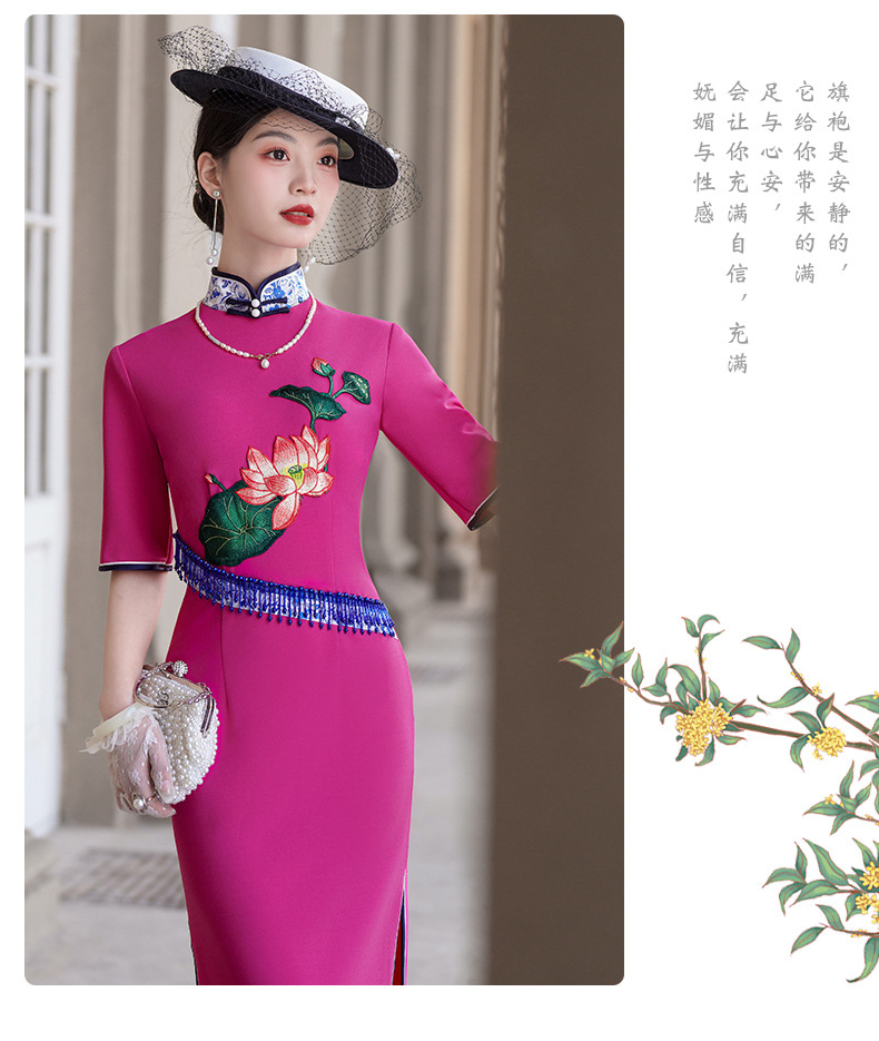 长款走秀旗袍2025夏季新款演出旗袍连衣裙年轻款复古修身气质旗袍