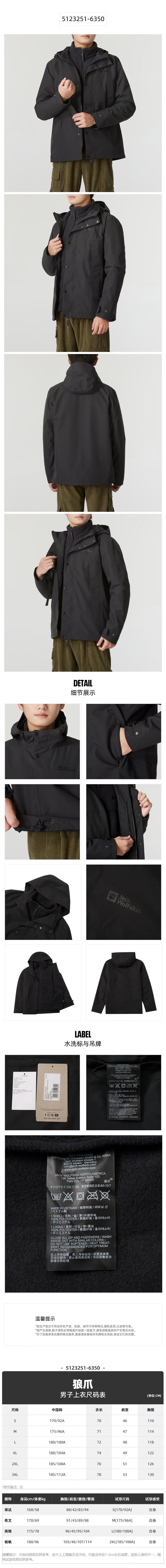 JackWolfskin狼爪 男摇粒绒三合一冲锋衣 5123251-6350