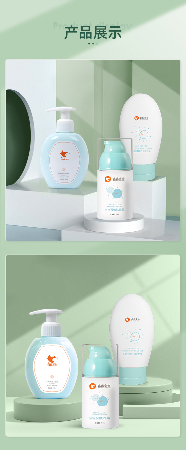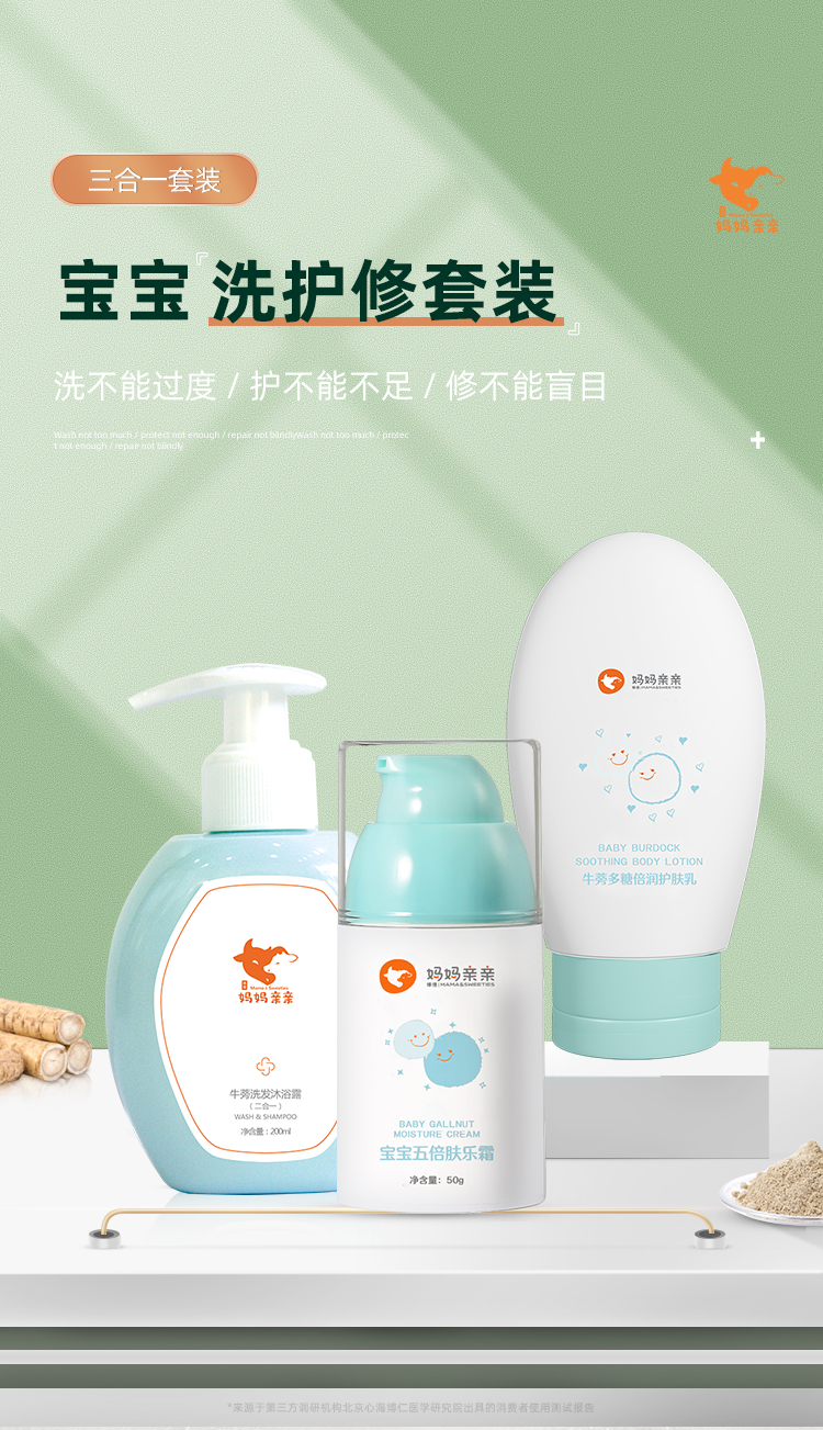 博德妈妈亲亲婴幼儿洗护修三步曲套装 植物成分呵护宝宝肌肤(200ml+200ml+50g)