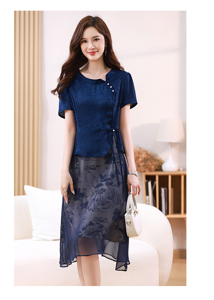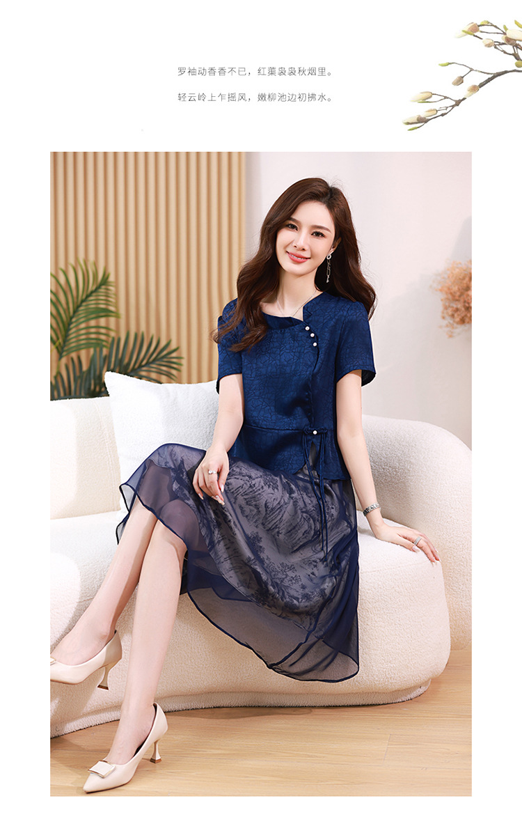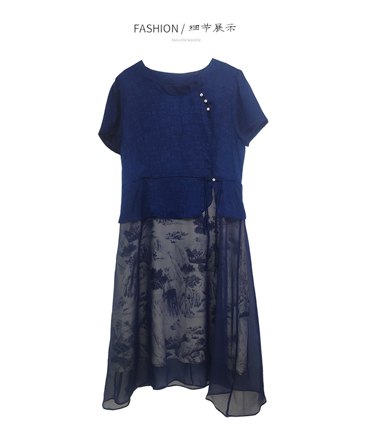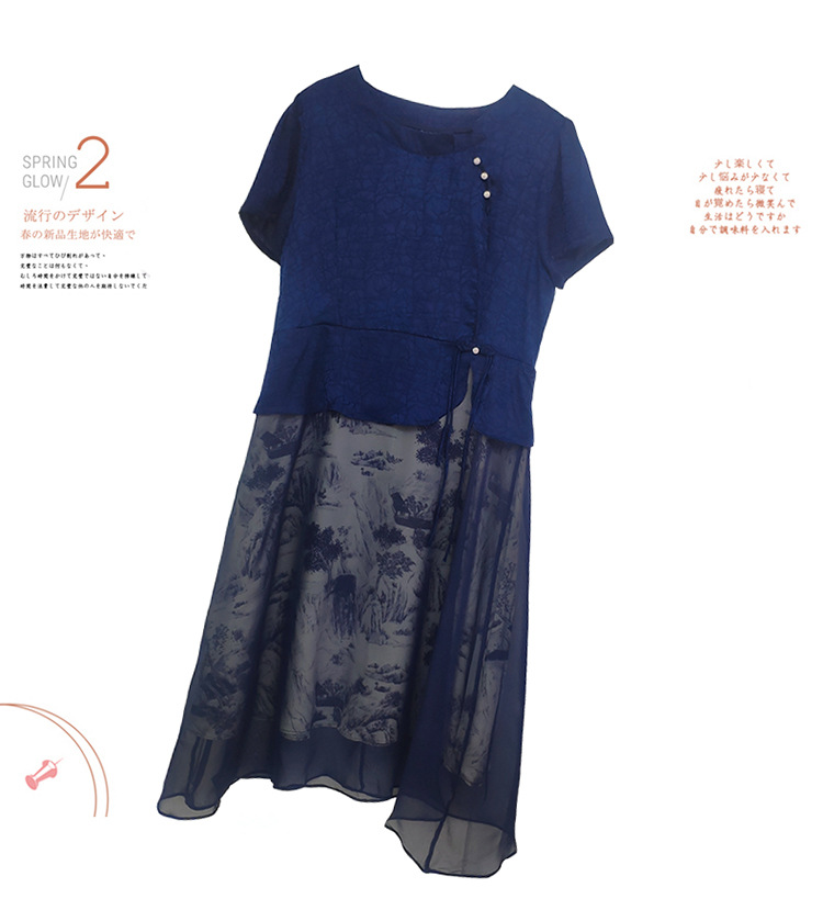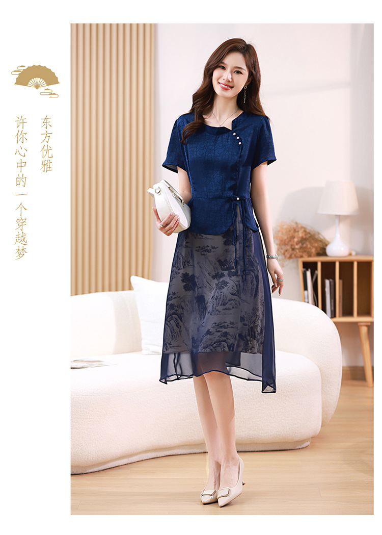时尚百搭,盘扣民族墨画防走光连衣裙短袖拼接印花裙子HR-WY85299