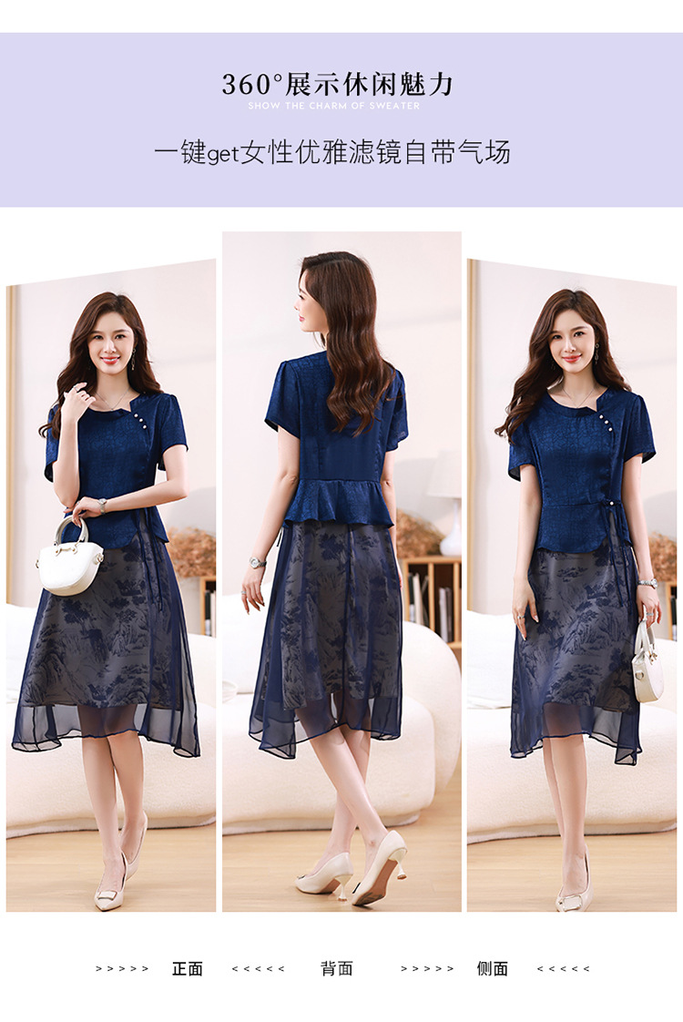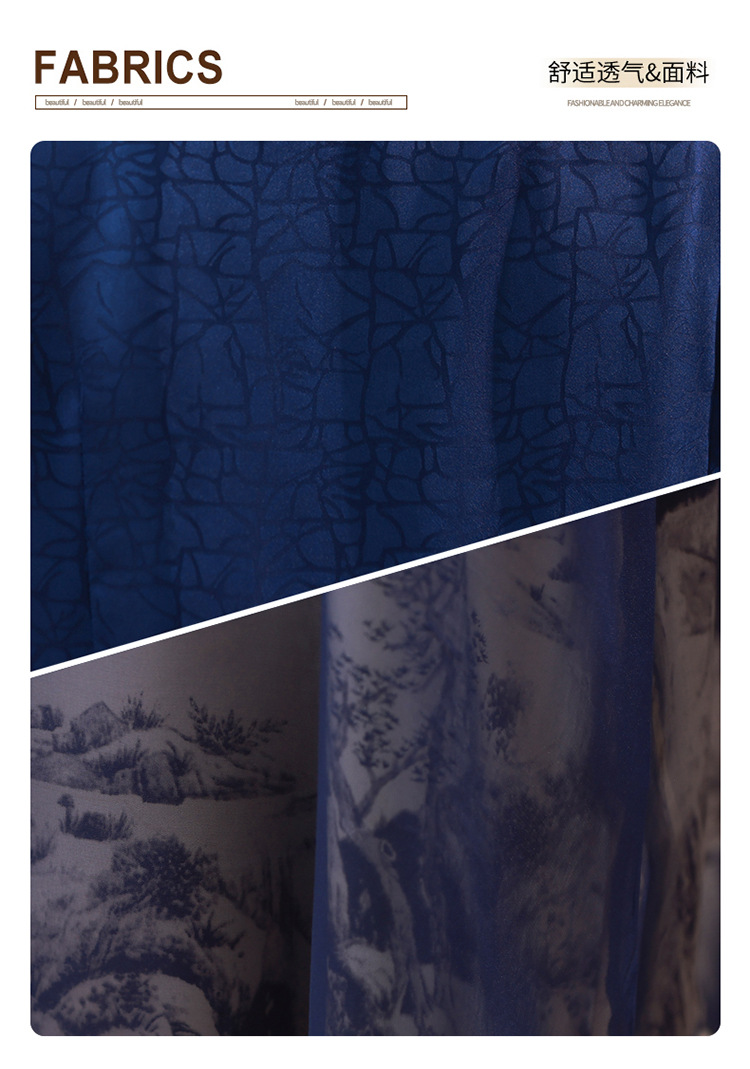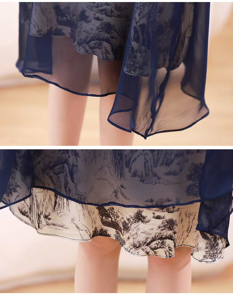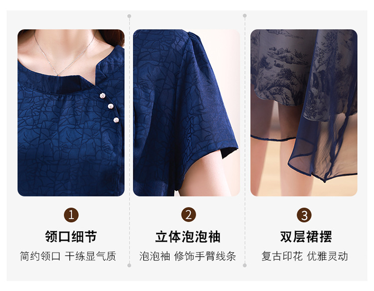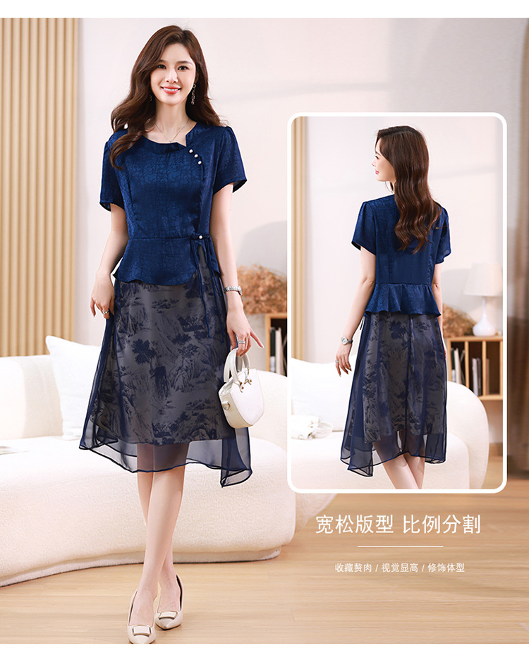 时尚百搭,盘扣民族墨画防走光连衣裙短袖拼接印花裙子HR-WY85299