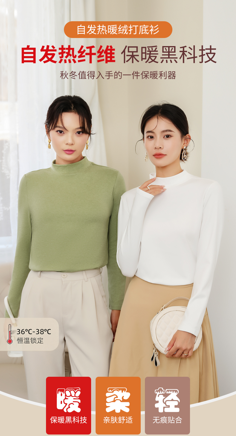 【男女同款】罗蒙秋冬打底衫男女半高领套头衫多色弹力显瘦内搭男女上衣内衣