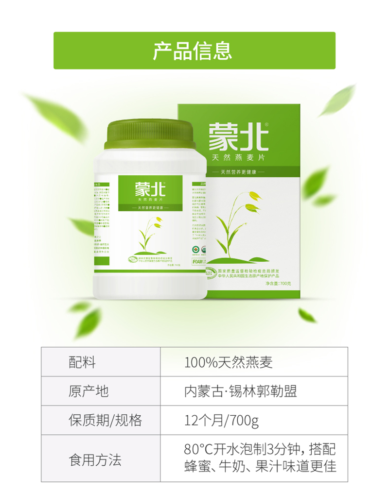 蒙北天然有机燕麦片(桶装)