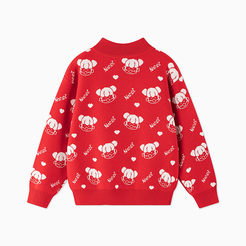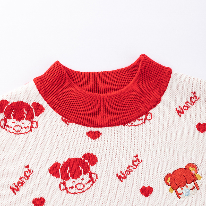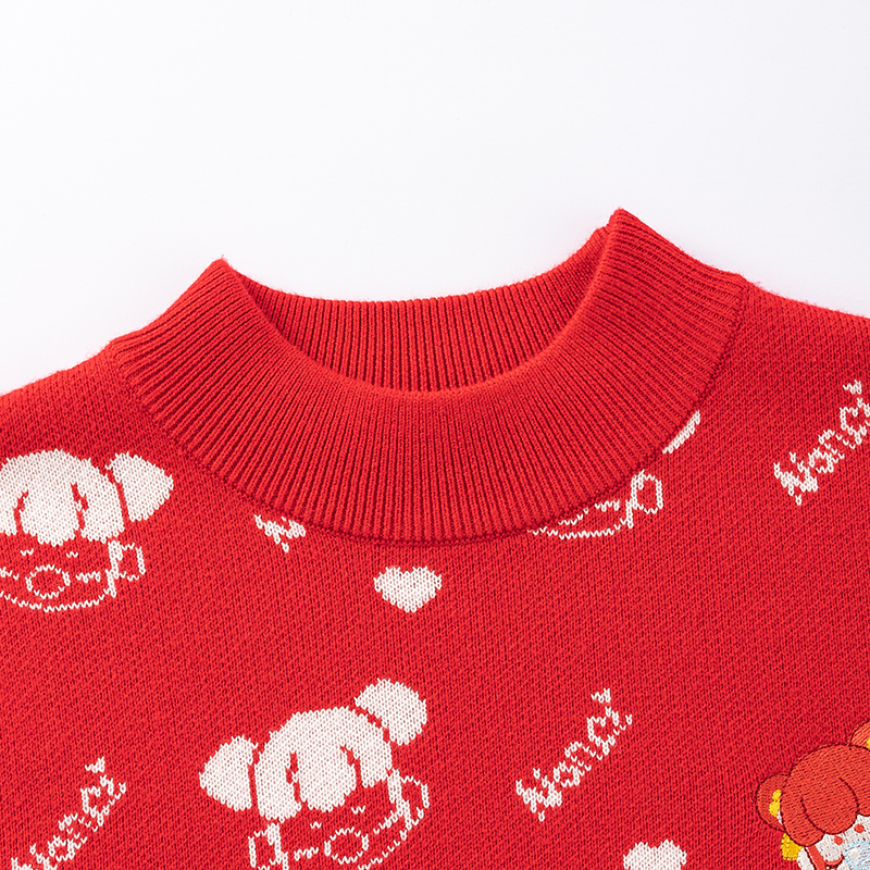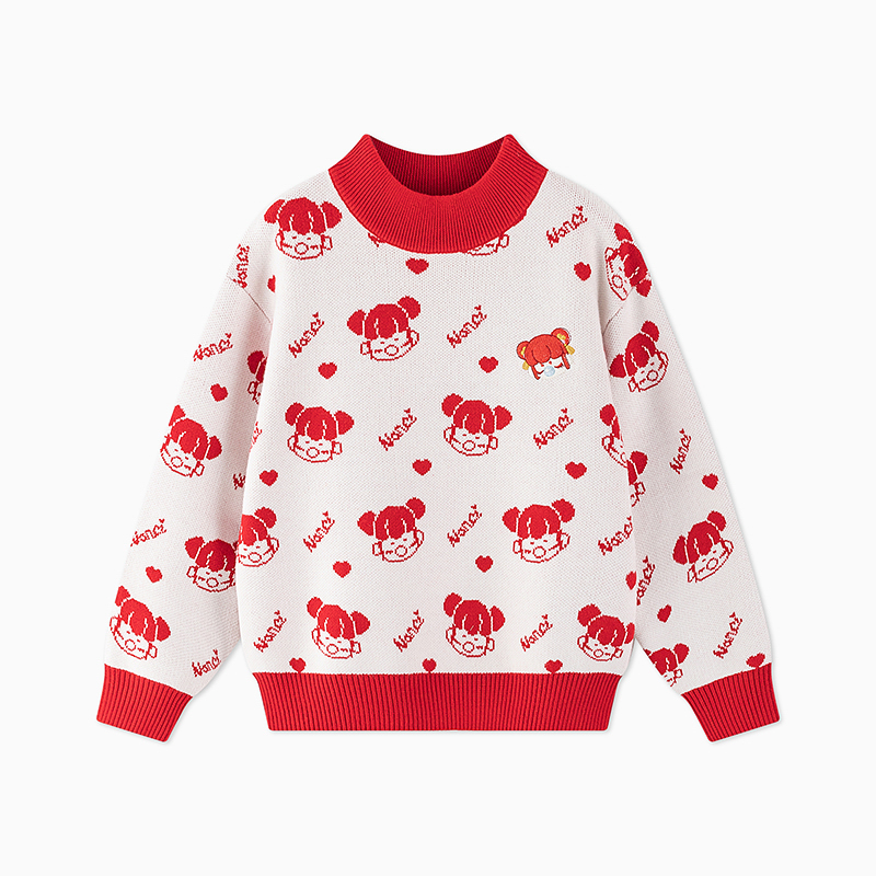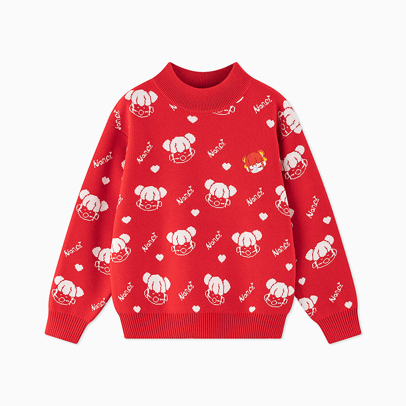 【秒2】【MQD】女童冬季新年童趣图案柔软舒适半高领针织衫