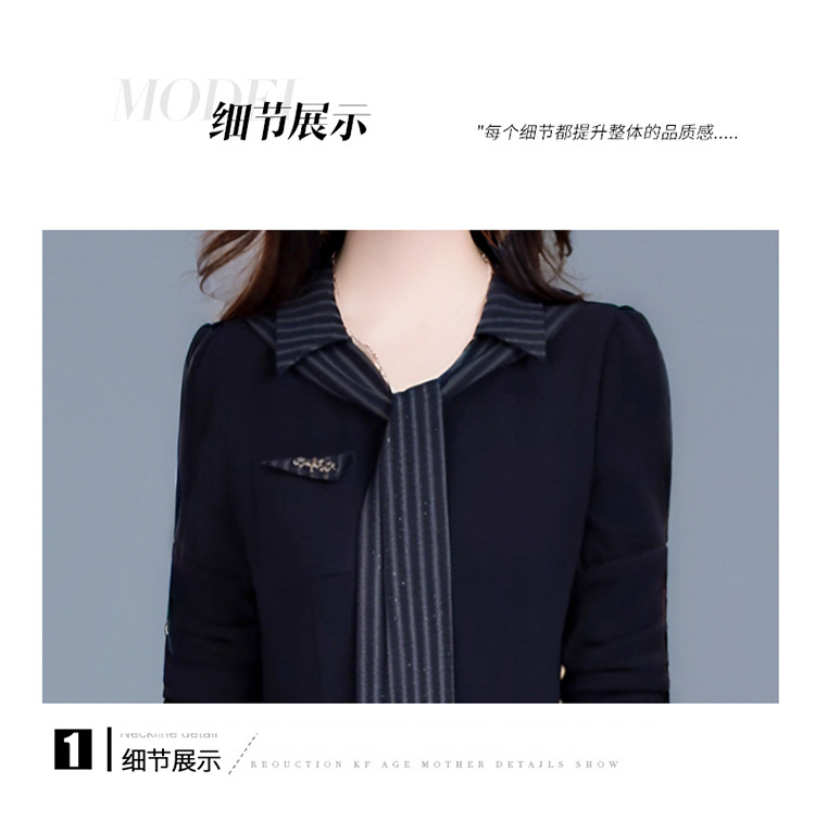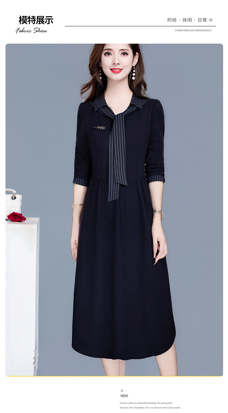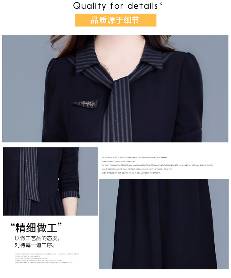QYM 99H249-Y气质拼结条纹围巾领收腰连衣裙百褶裙A字裙 商品图4