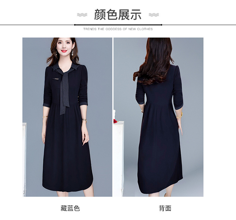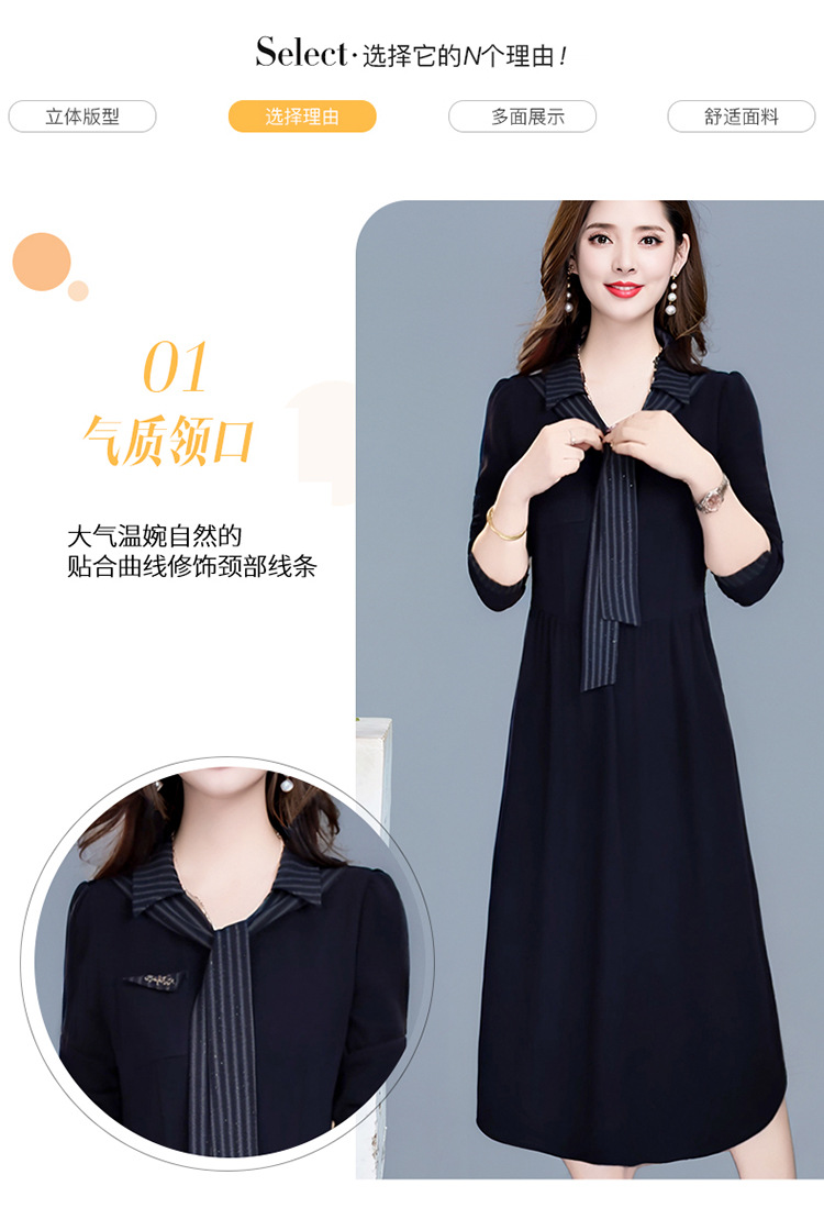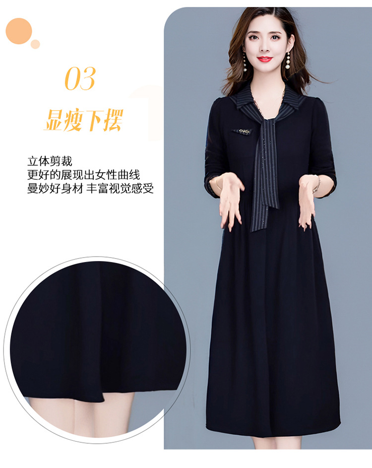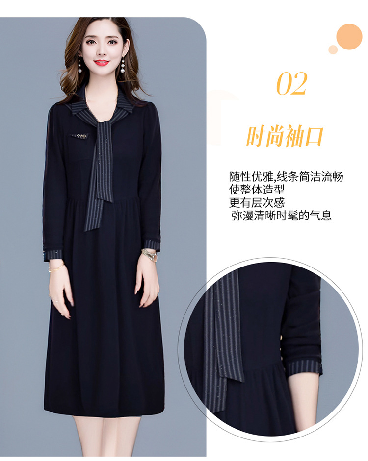 QYM 99H249-Y气质拼结条纹围巾领收腰连衣裙百褶裙A字裙 商品图3