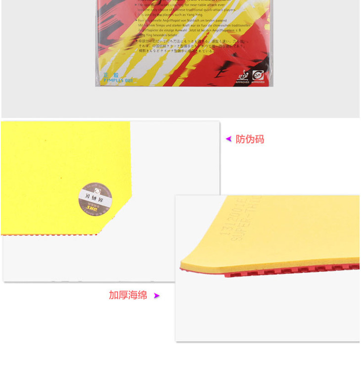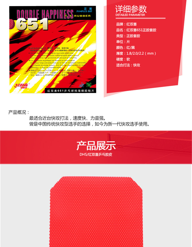 DHS红双喜651正胶套胶乒乓球胶皮快攻击打型正胶颗粒胶乒乓球套胶