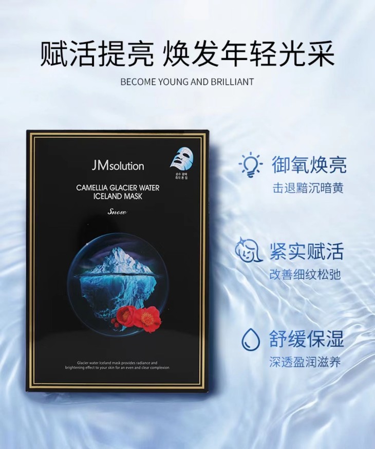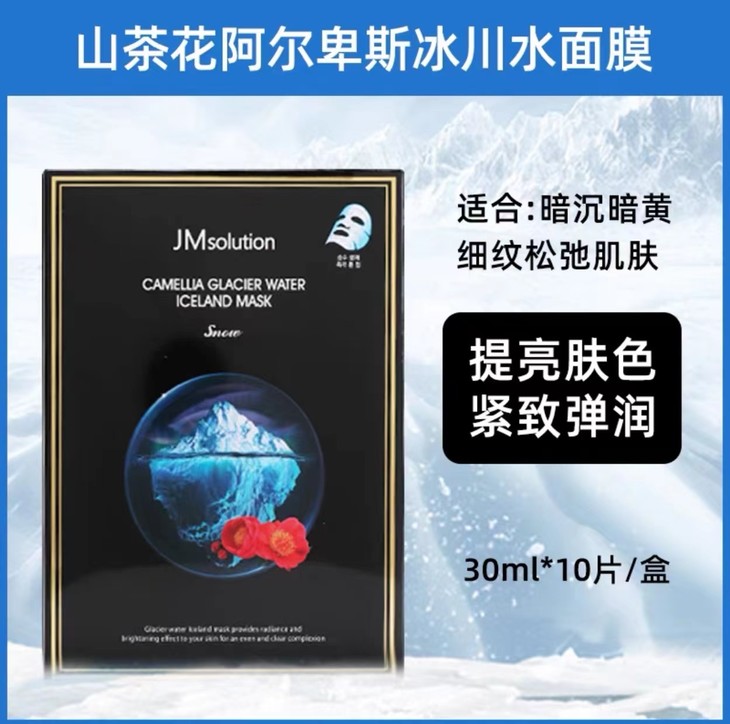 👑JM solution 冰山水山茶花面膜10片 👍JM-新品面膜! 🌵含有:山茶花提取物+冰岛冰川水+3种玻尿酸 ⭐主打:提亮滋养、改善暗沉肌肤 ✅有效:抑制黑色素、提亮肤色、补水保湿、细腻肌肤 💯精华丰富,水润保湿部粘腻 🔅亲肤天丝膜布,软薄服帖,隐形亲肤
