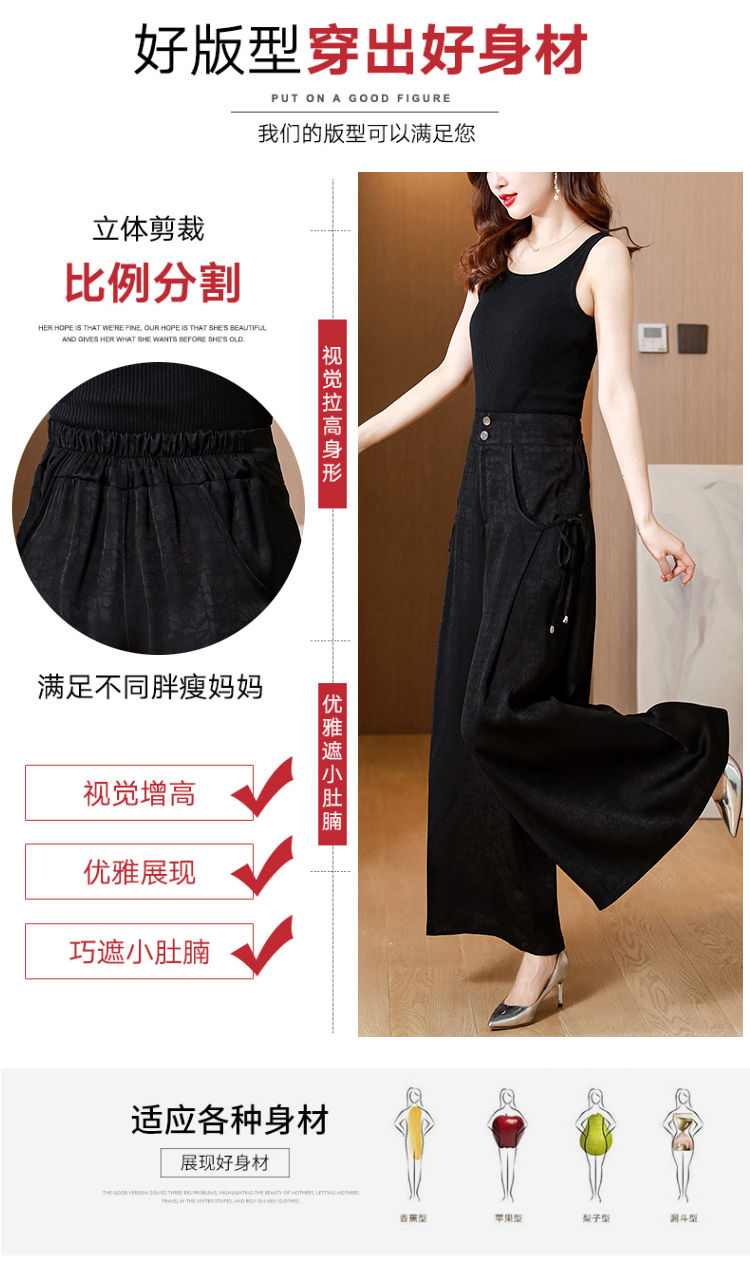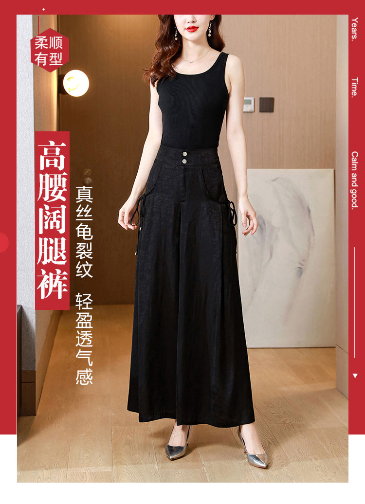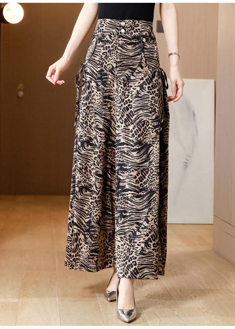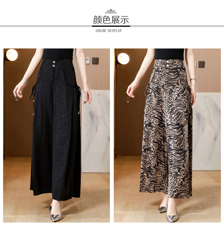 DP1035香云纱大码豹纹真丝腿裤女夏季2022新款宽松高腰时尚休闲长裤子