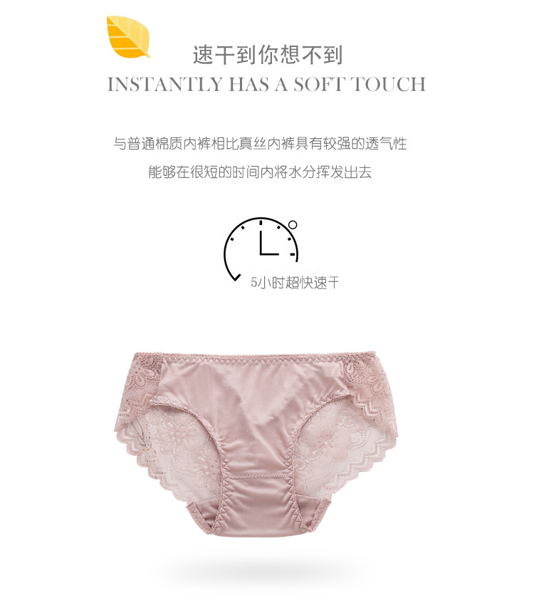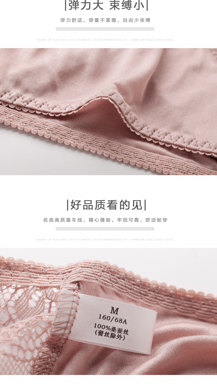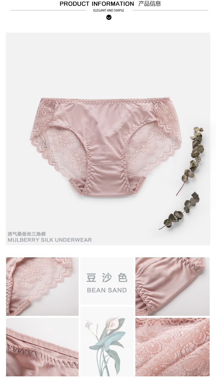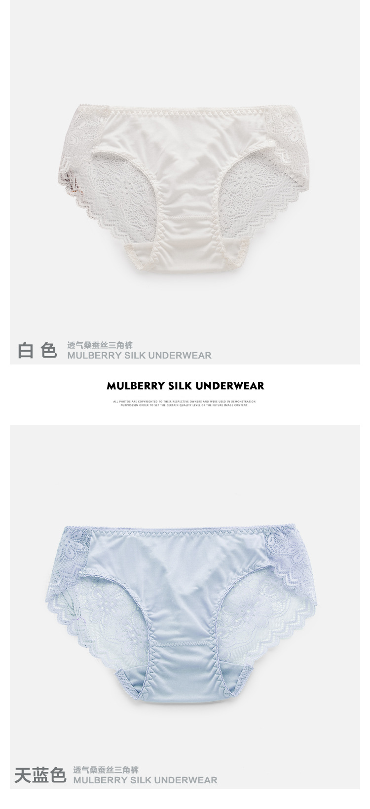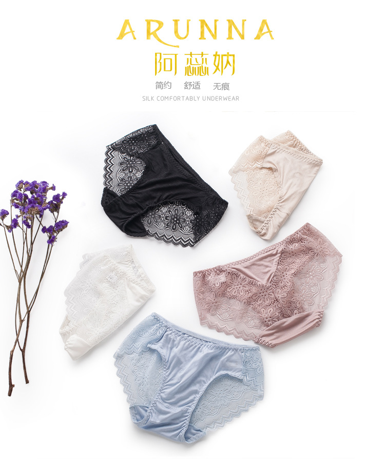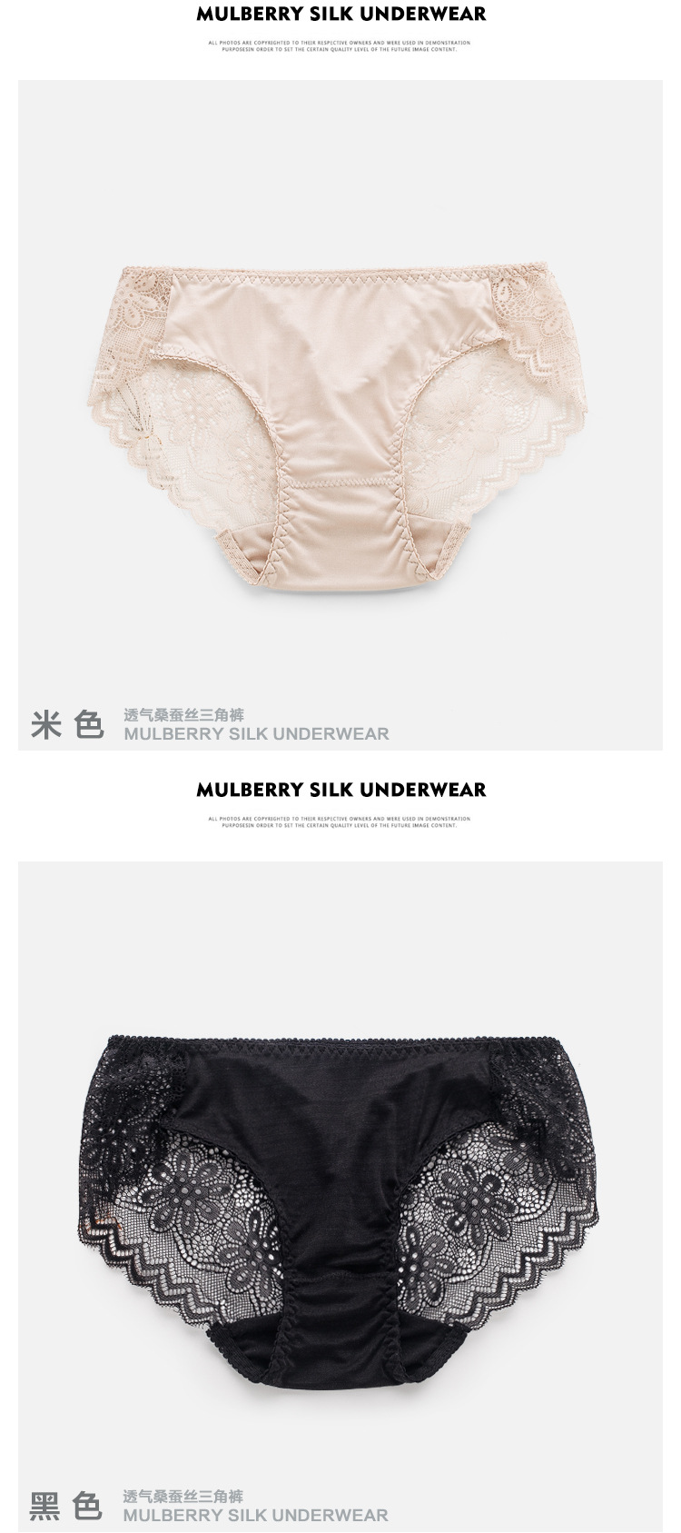 ARN-K049真丝内裤女桑蚕丝镂空蕾丝边性感舒适包臀性感中腰女士三角裤