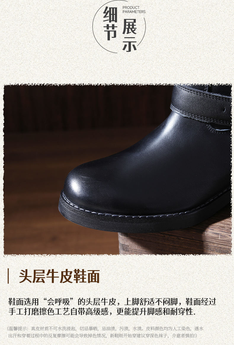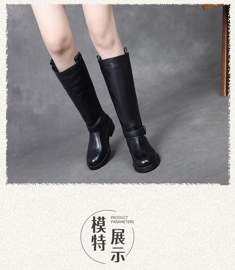 FR 85895骑士靴复古粗跟皮带扣百搭长筒靴马丁靴 商品图3