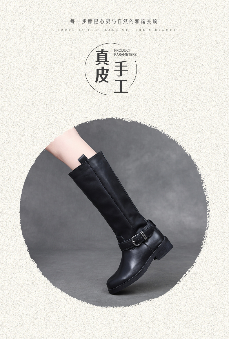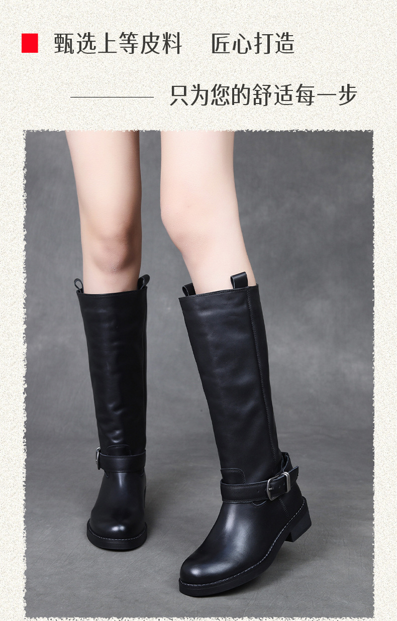 FR 85895骑士靴复古粗跟皮带扣百搭长筒靴马丁靴 商品图1