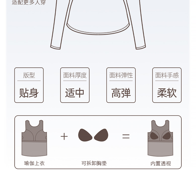 梵美人 F2552 瑜伽长袖 可拆卸胸垫 裸感
