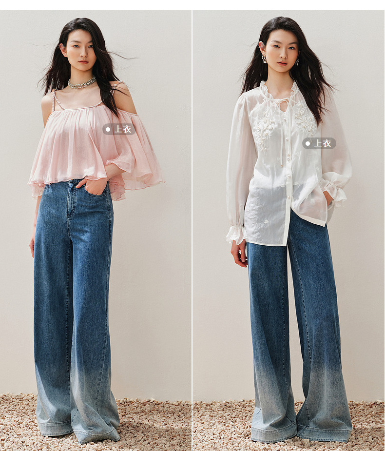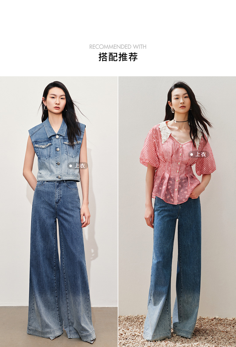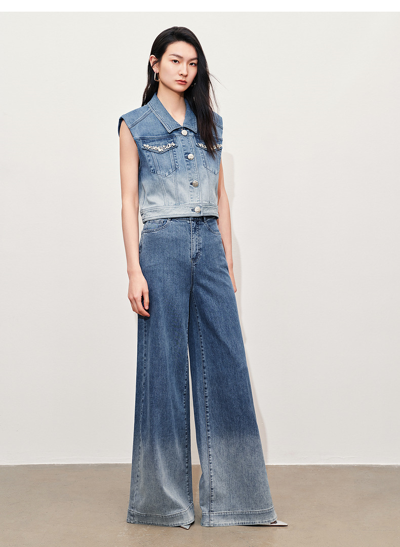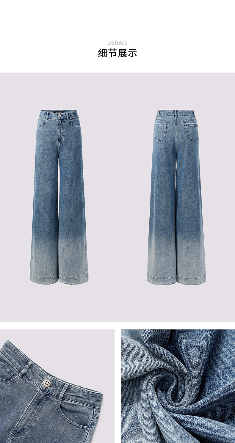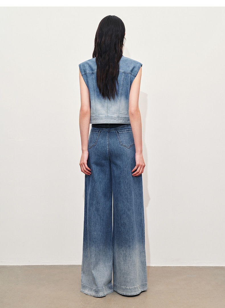 【静奢度假-商场同款】MAXRIENY*休闲风加大阔腿渐变牛仔裤女(货号:MC85PA263)