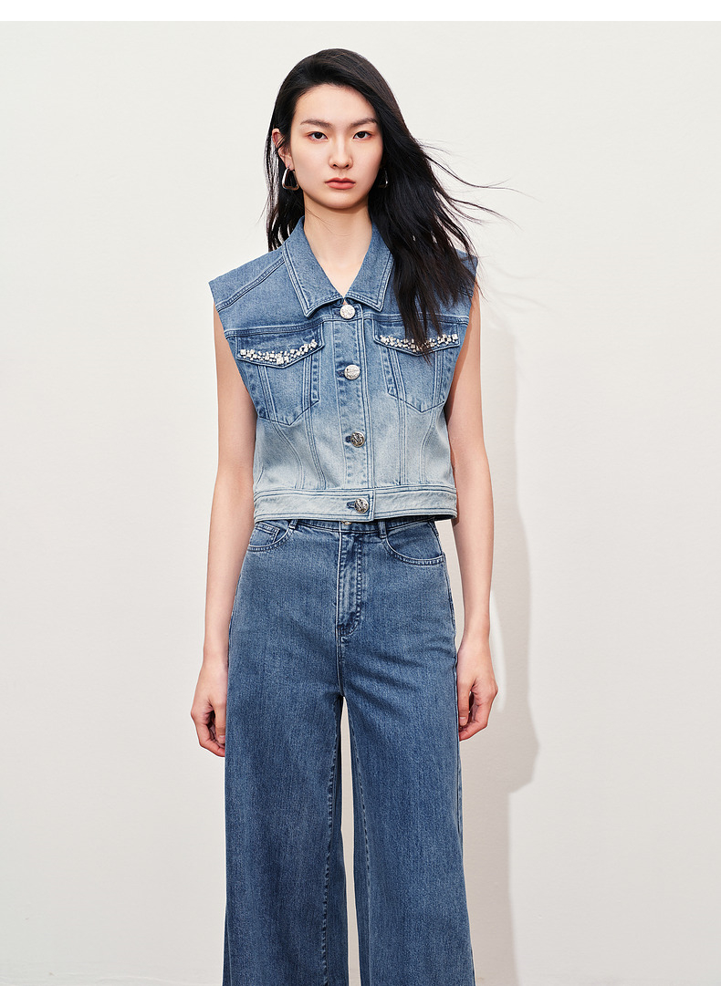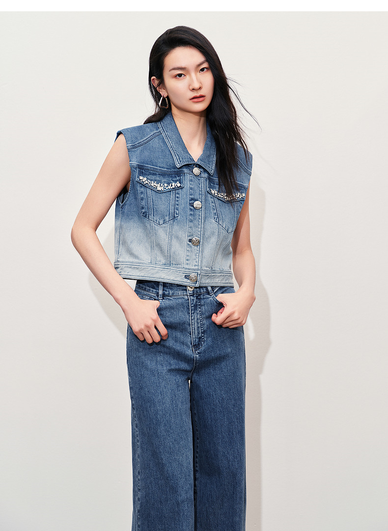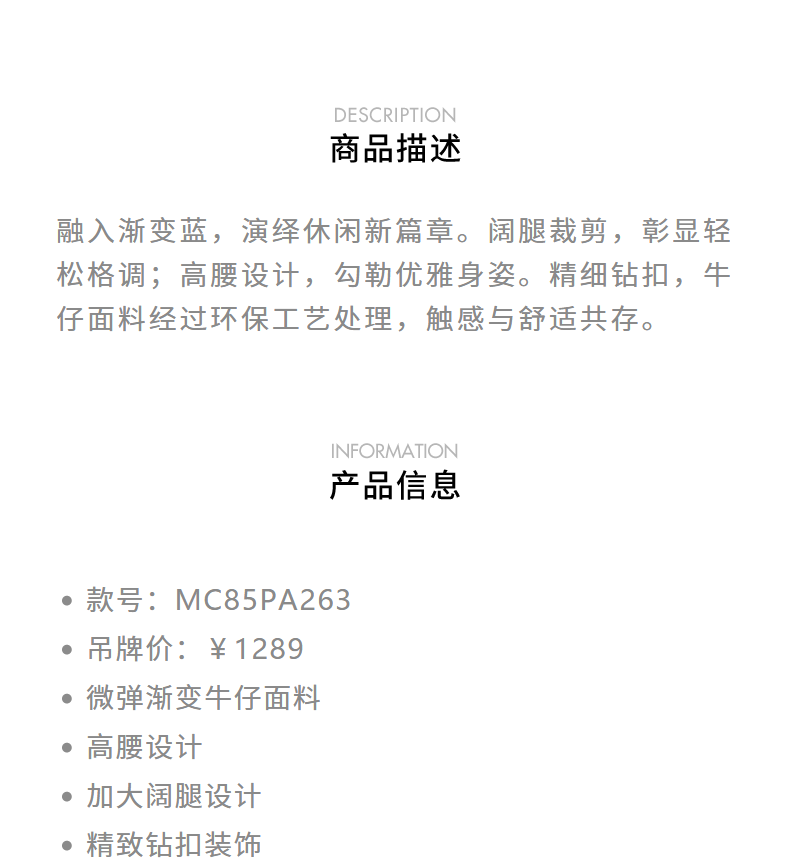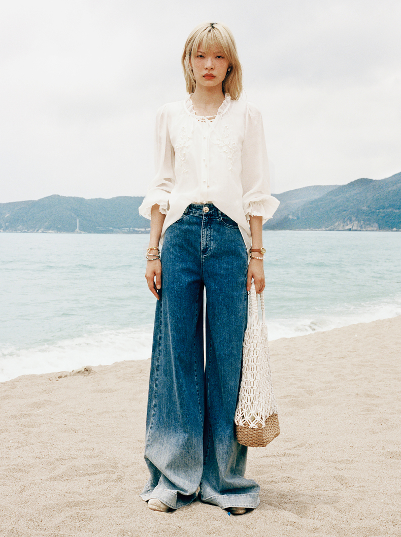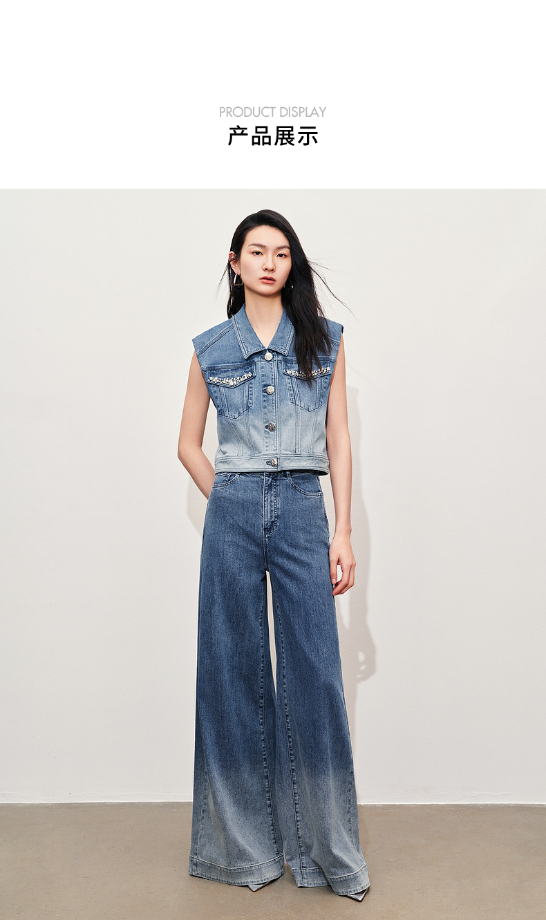 【静奢度假-商场同款】MAXRIENY*休闲风加大阔腿渐变牛仔裤女(货号:MC85PA263)