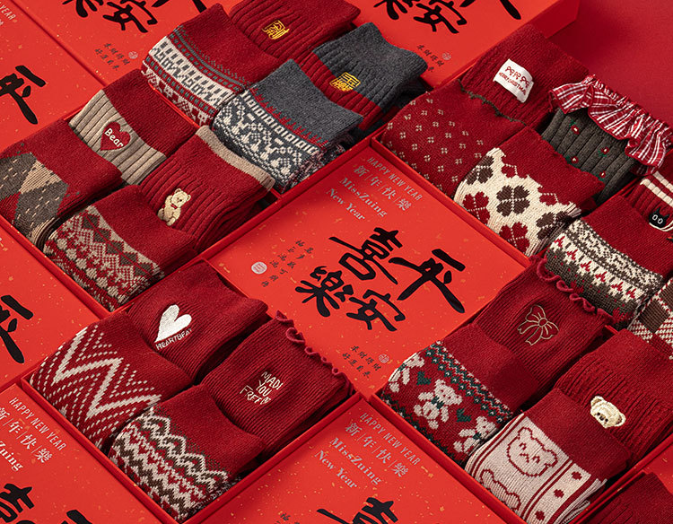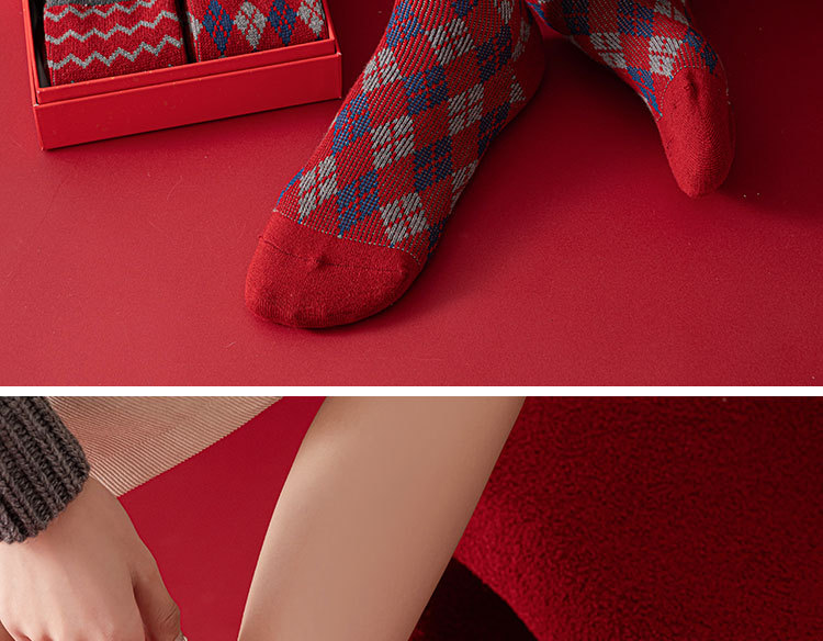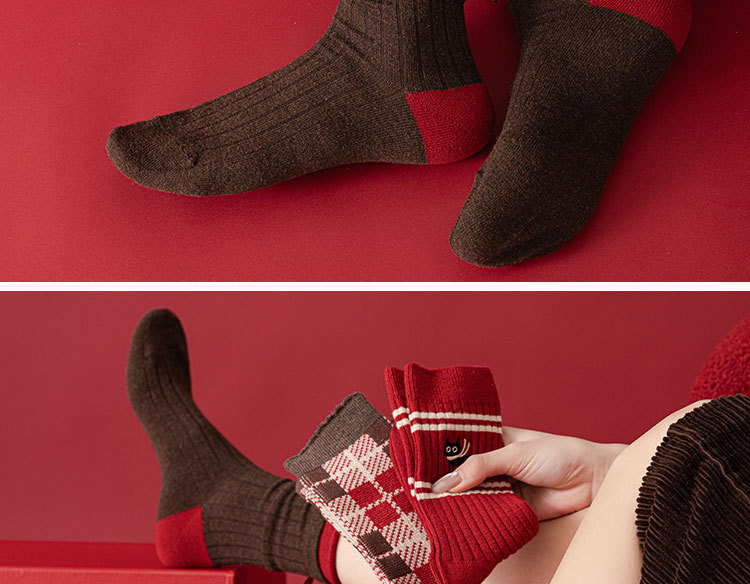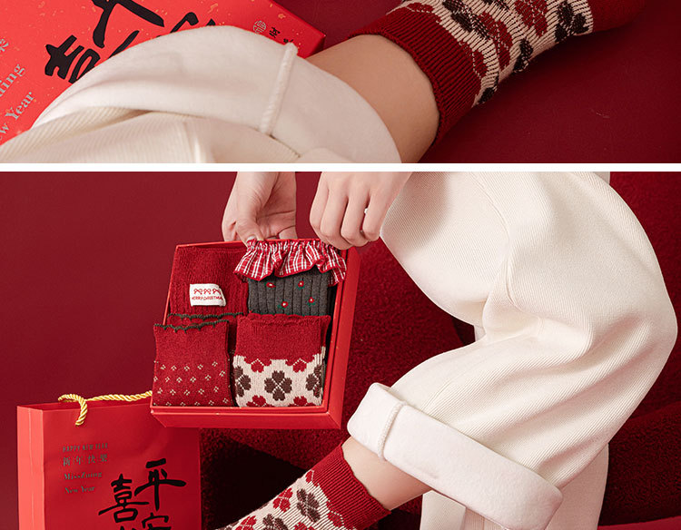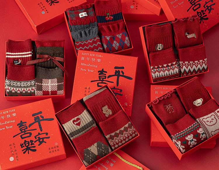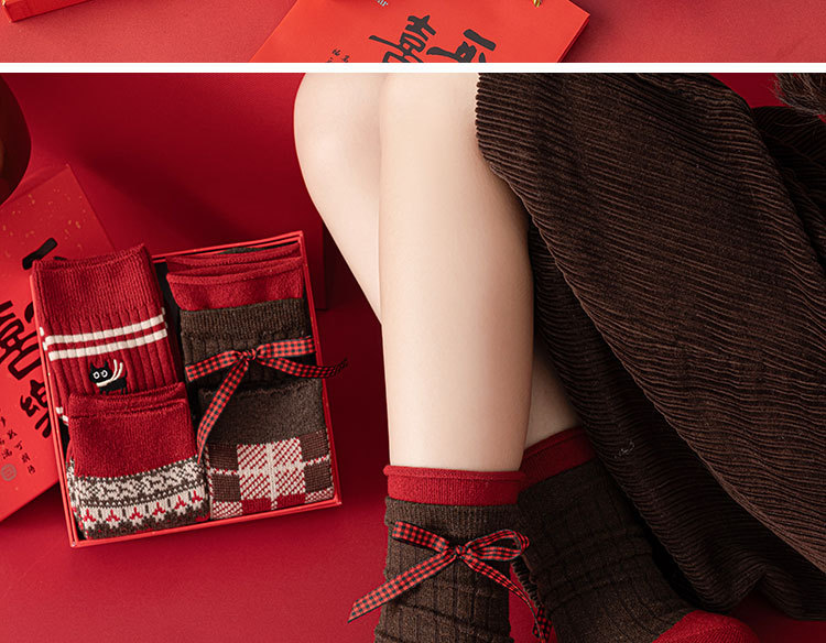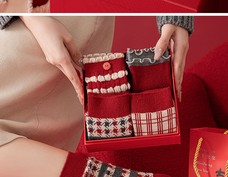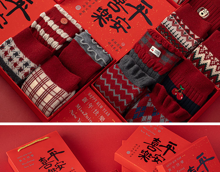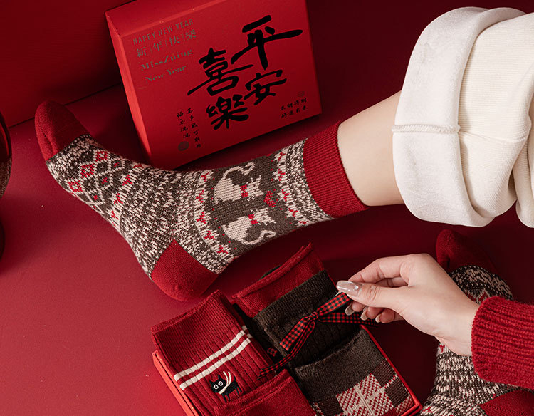 【本命年穿搭❗️样式精美高级】25新款礼盒袜子女中筒羊绒袜新年大红袜子双针双路本命年礼盒袜。ja