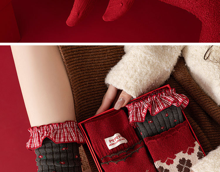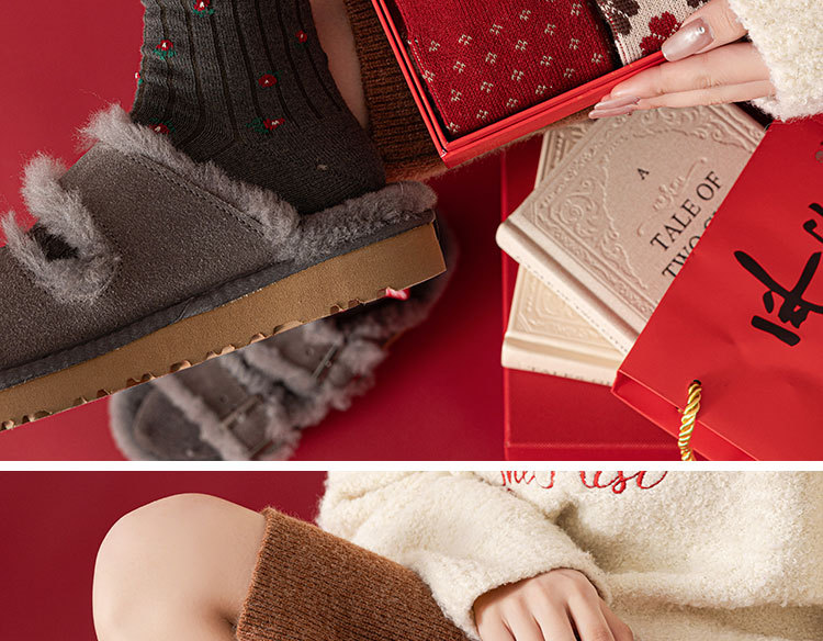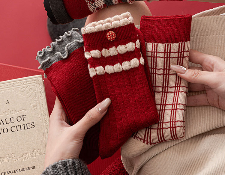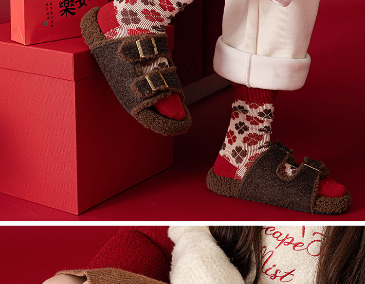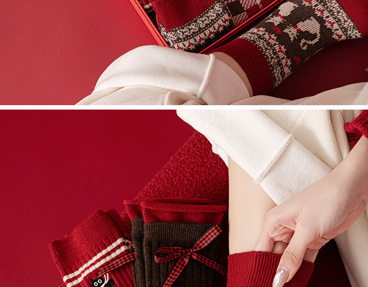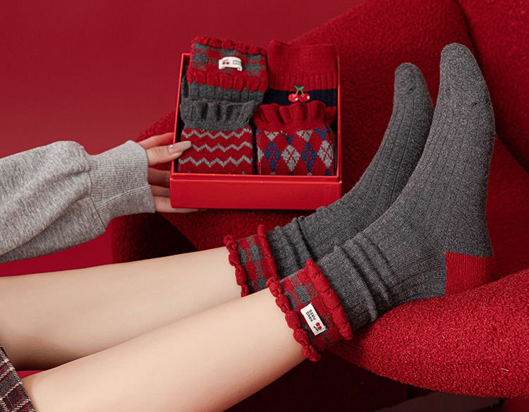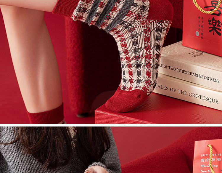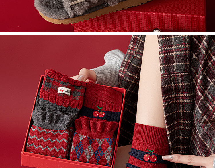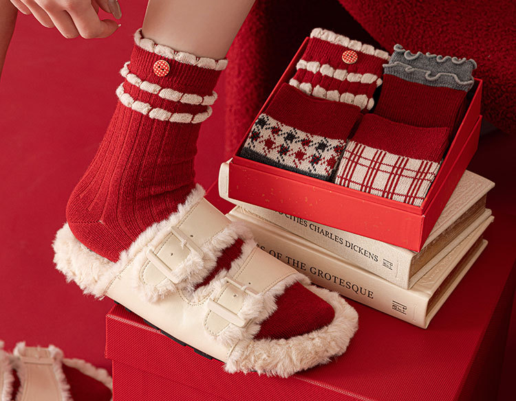 【本命年穿搭❗️样式精美高级】25新款礼盒袜子女中筒羊绒袜新年大红袜子双针双路本命年礼盒袜。ja