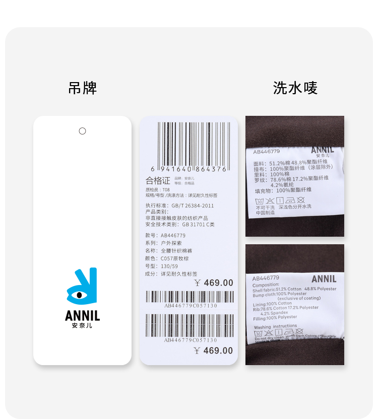 男童保暖舒弹棉裤裤子冬季新款安奈儿童装实体店同款AB446779