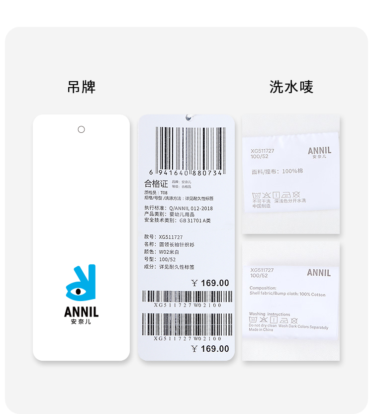 【实体店同款】女童圆领长袖针织衫春季新款安奈儿童装XG511727