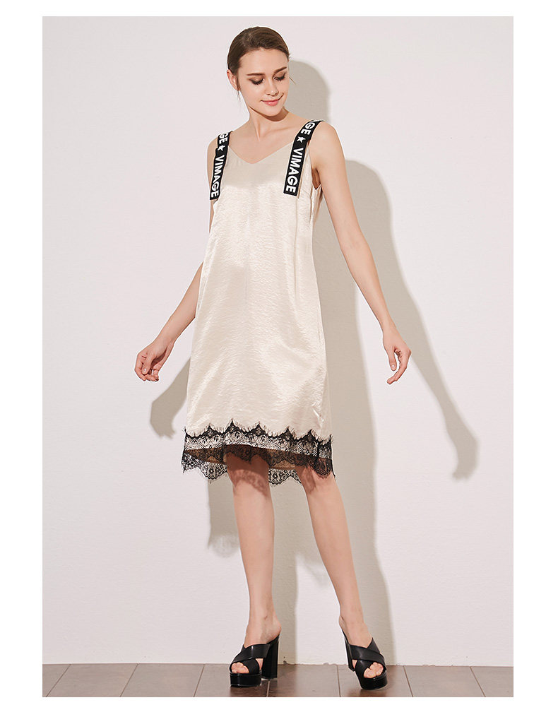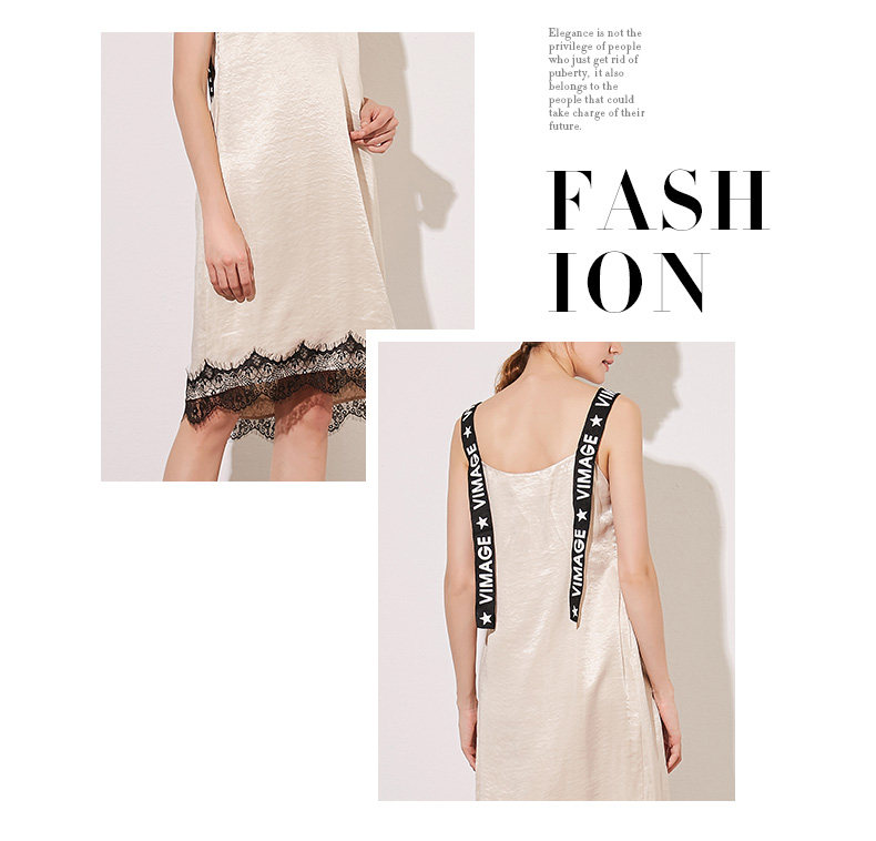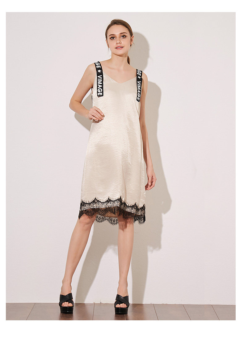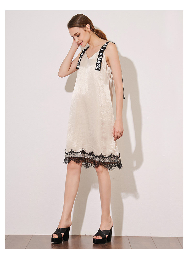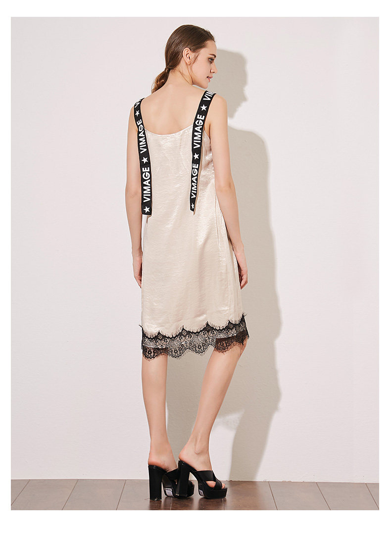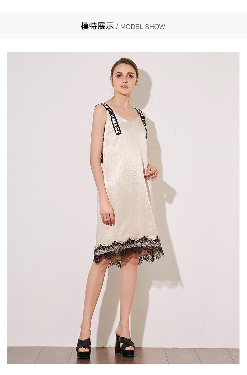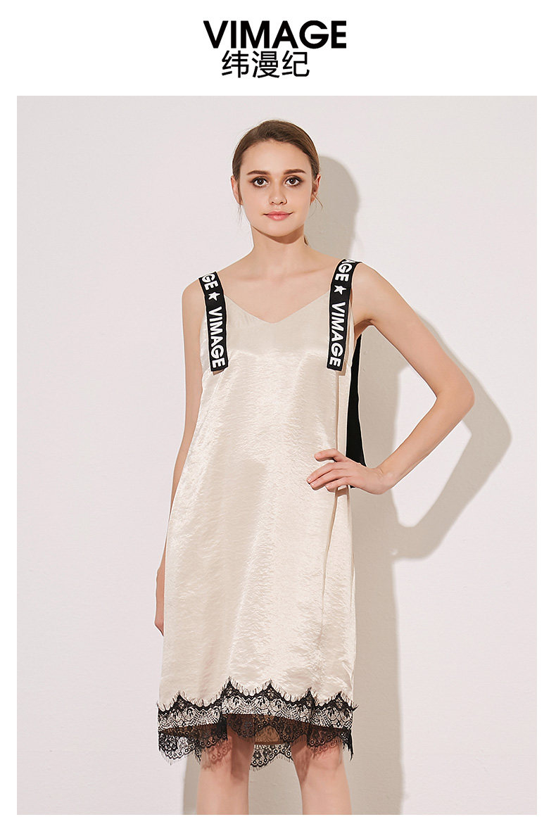 VIMAGE纬漫纪夏季女装字母吊带V字领直筒中长款连衣裙女V907501