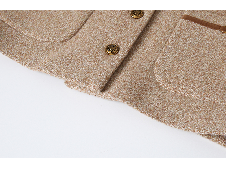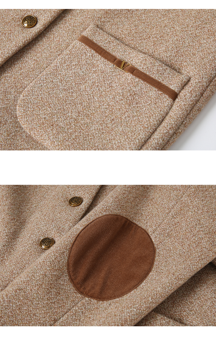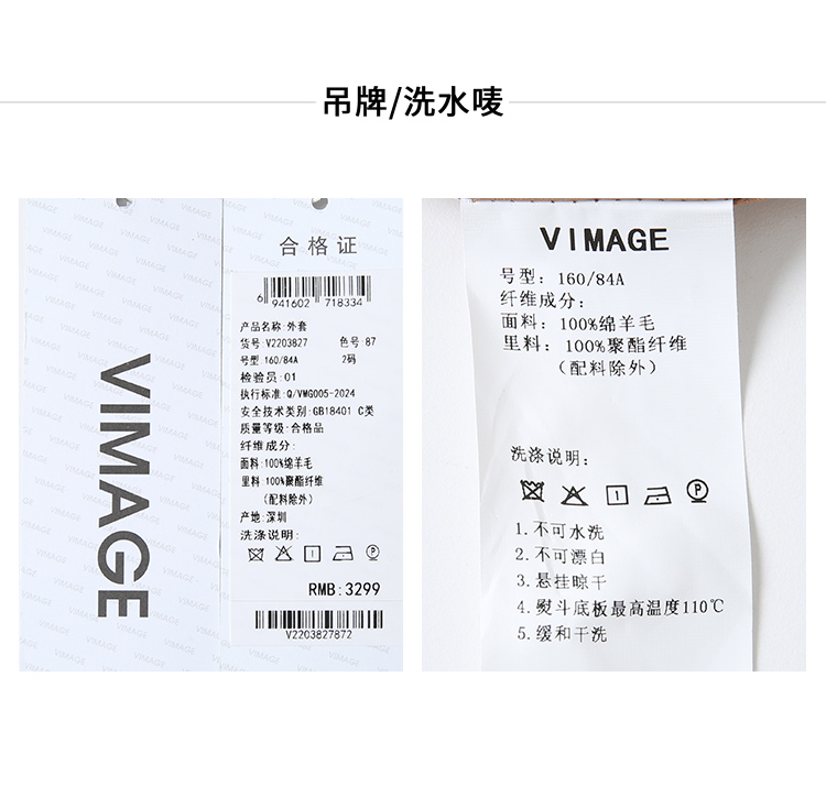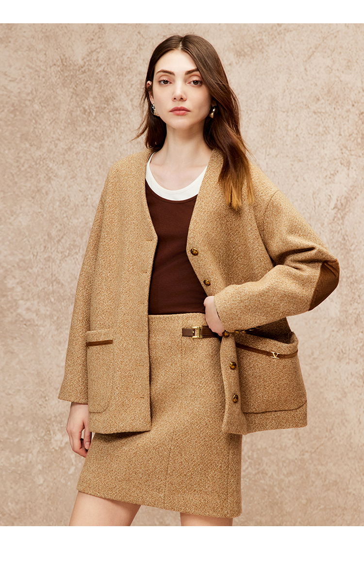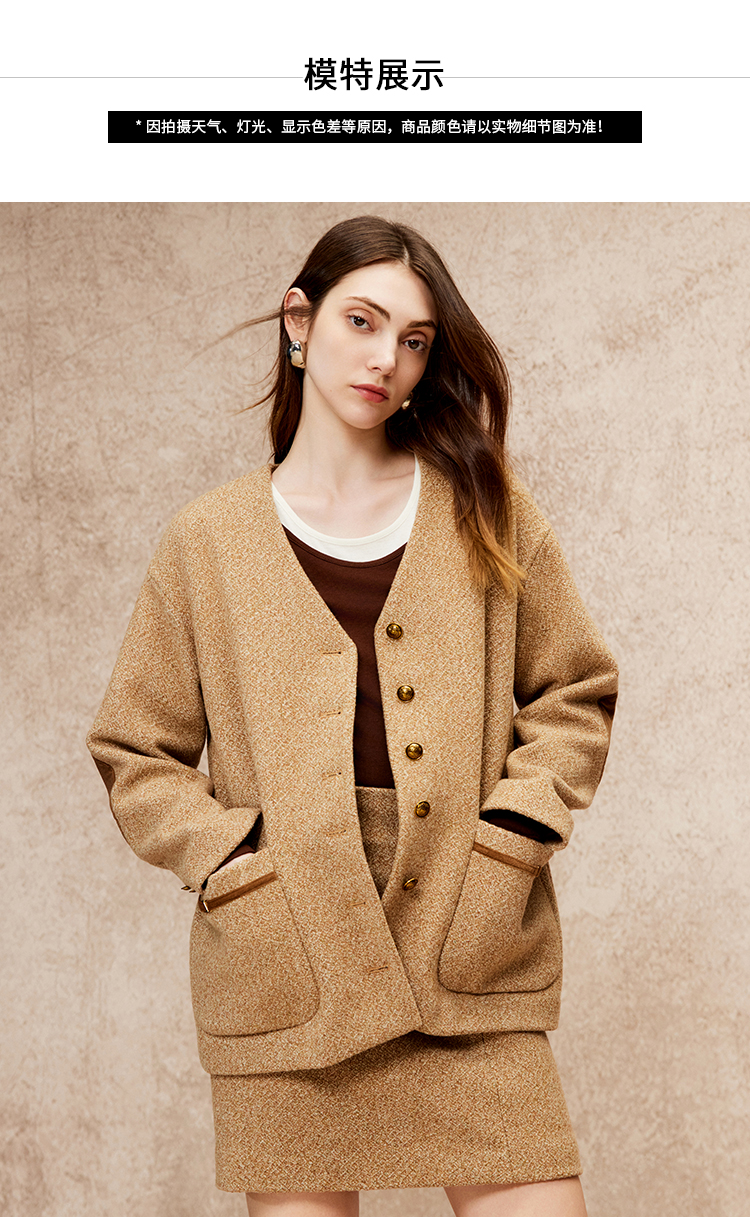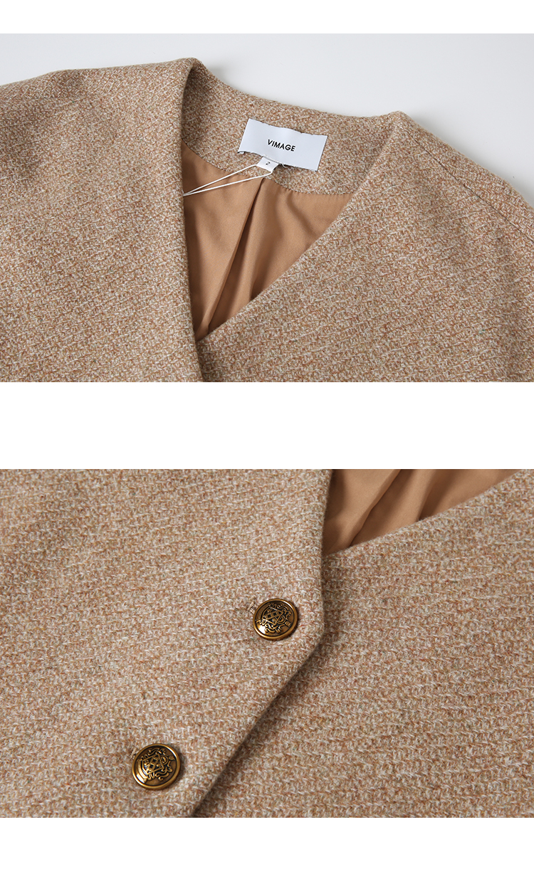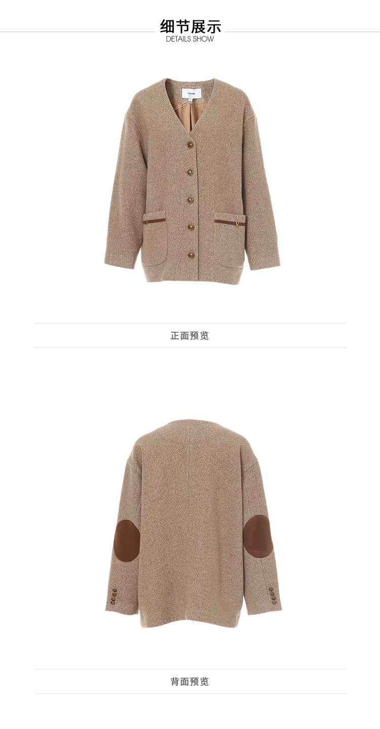 VIMAGE纬漫纪冬季新款100%绵羊毛时尚V领复古宽松直筒百搭外套V2203827