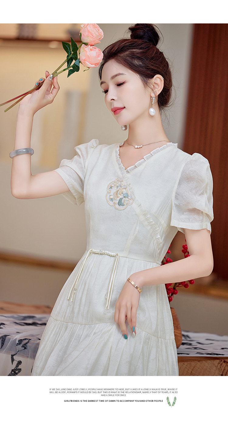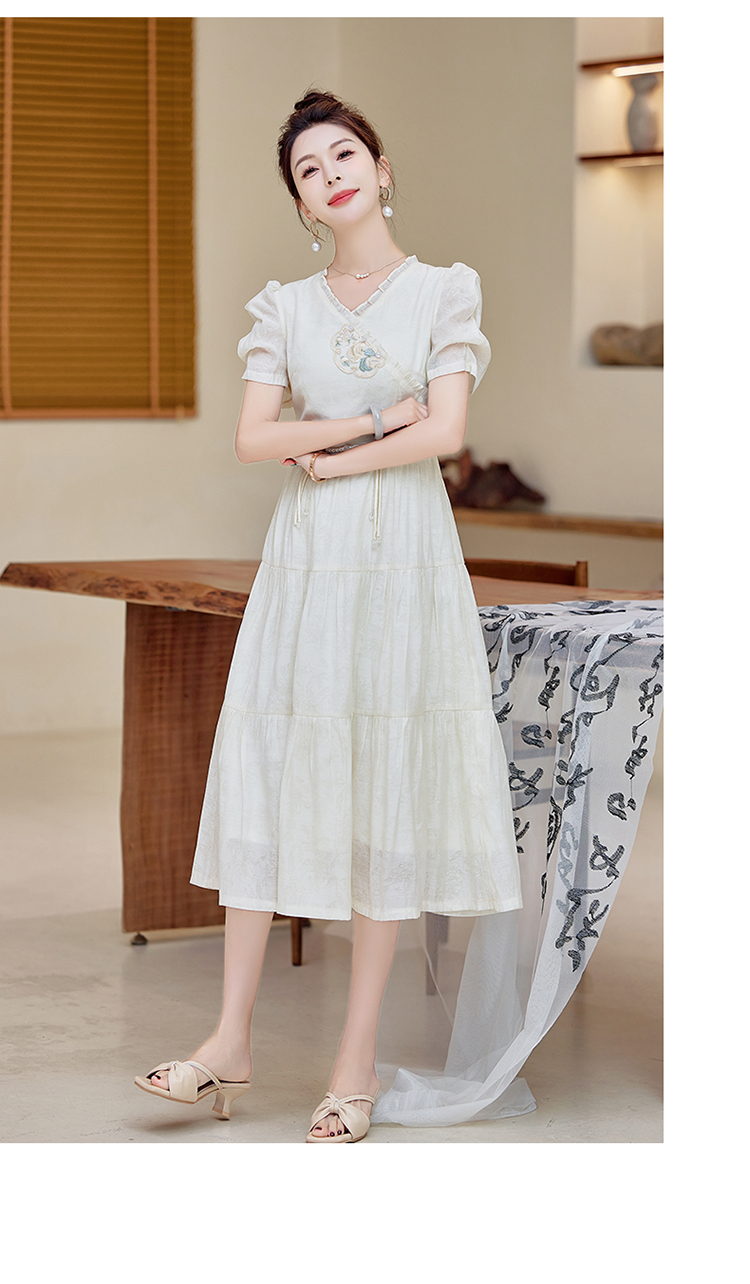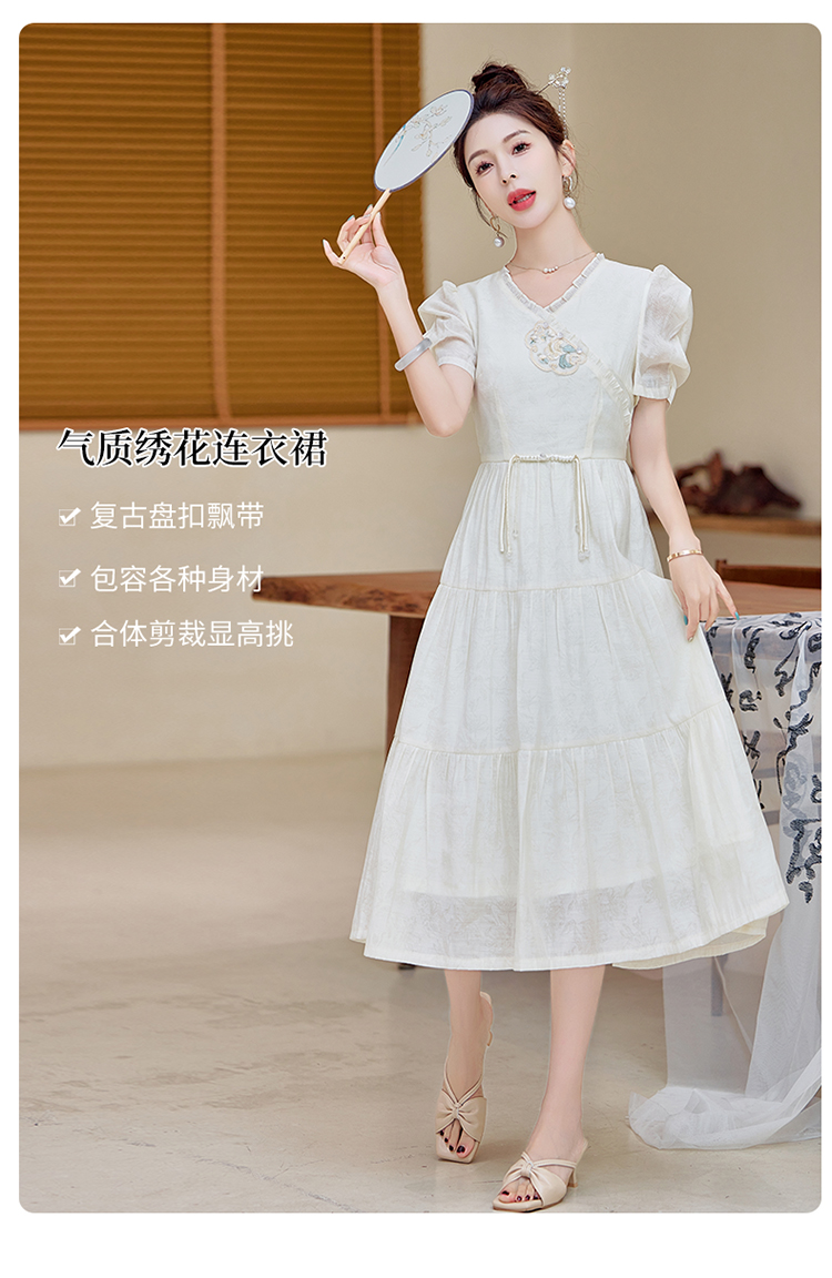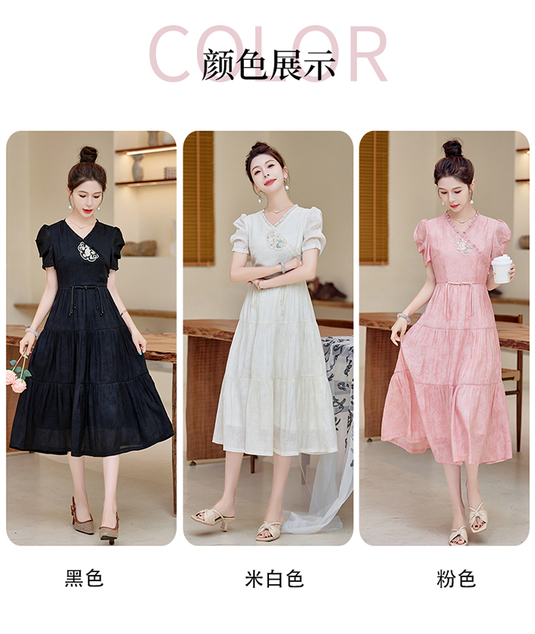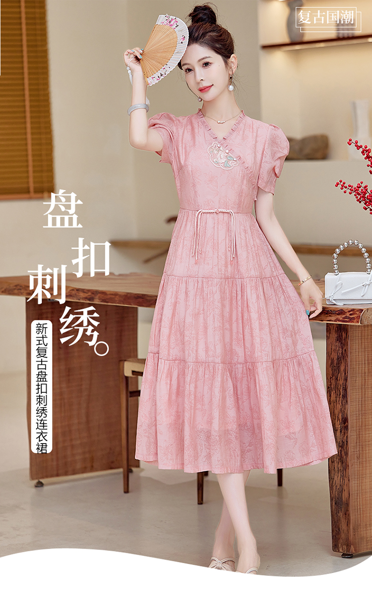 时尚优雅,气质新中式刺绣长款收腰连衣裙HR-YYG82868