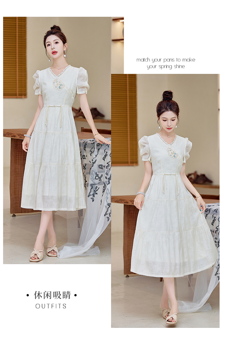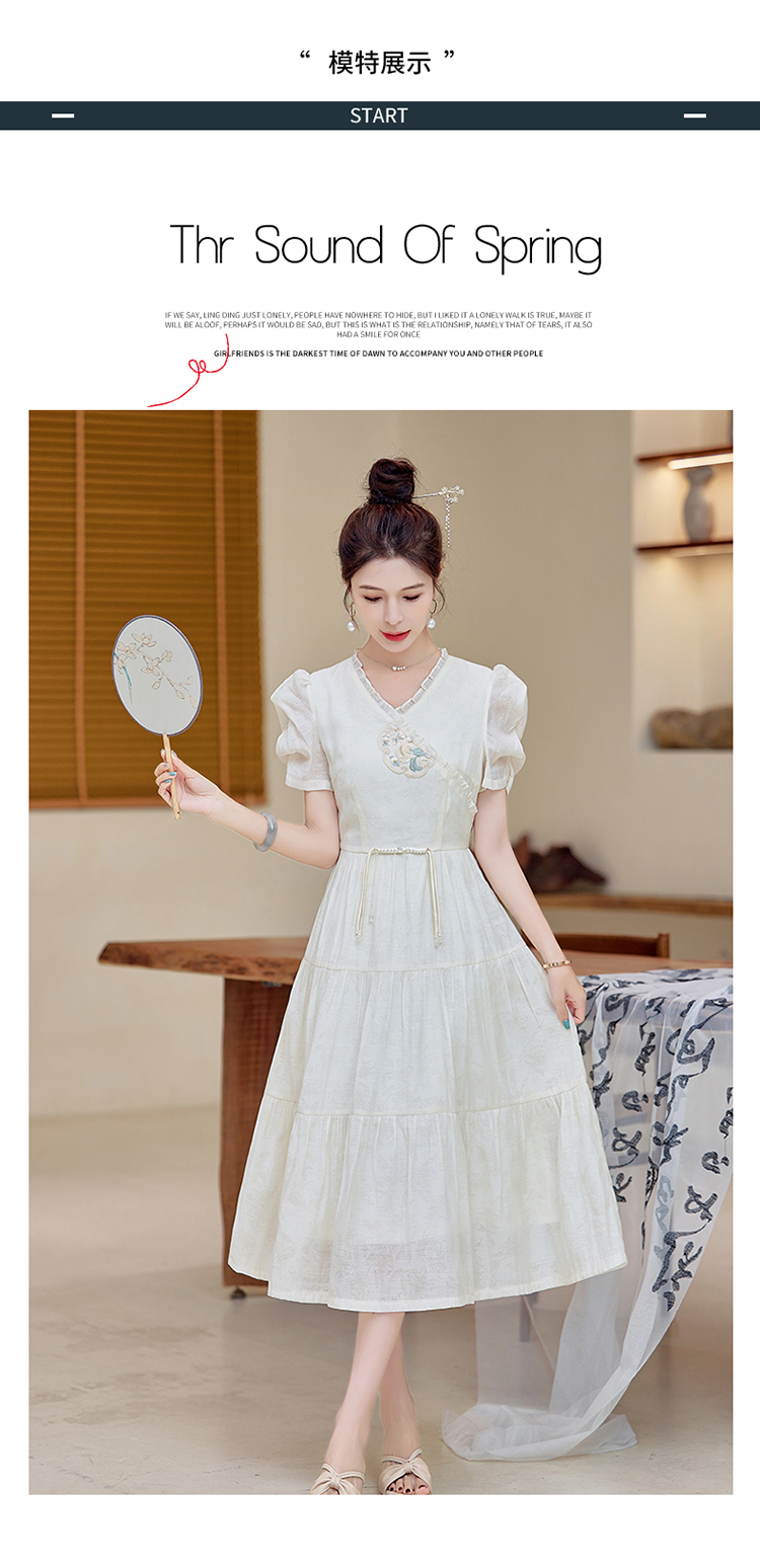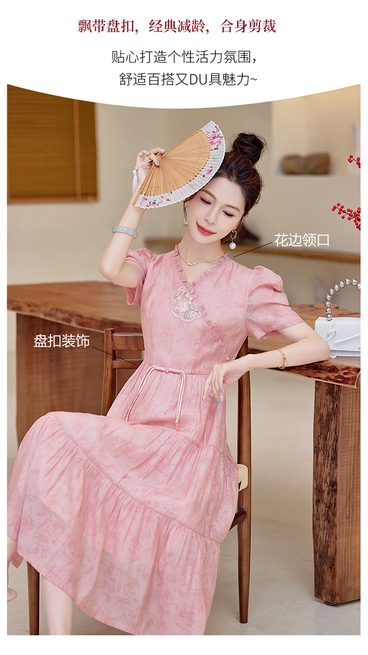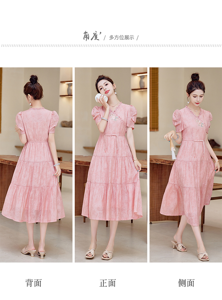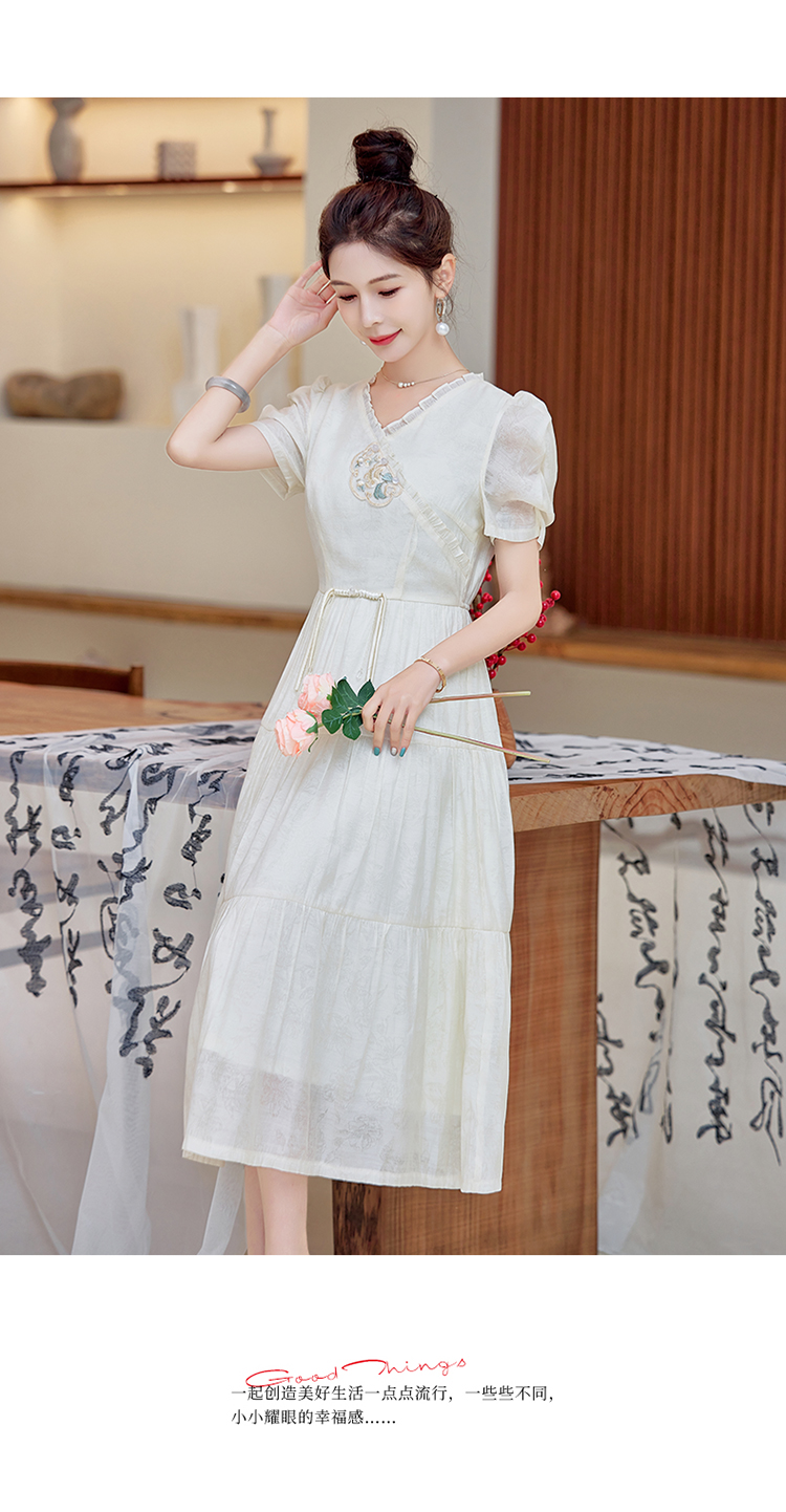 时尚优雅,气质新中式刺绣长款收腰连衣裙HR-YYG82868