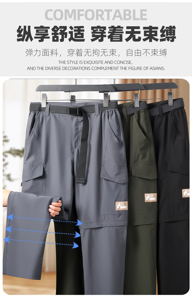 【可脱卸裤腿】【冲锋裤】【DK】大依优型大码松紧腰直口休闲运动裤直筒卫裤登山冲锋裤加肥加大长裤胖子裤子