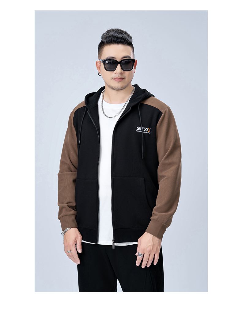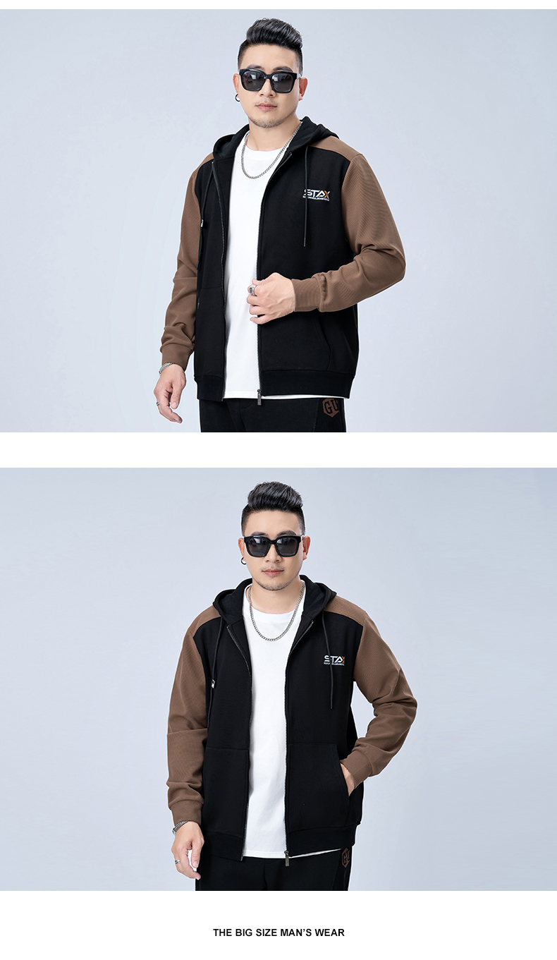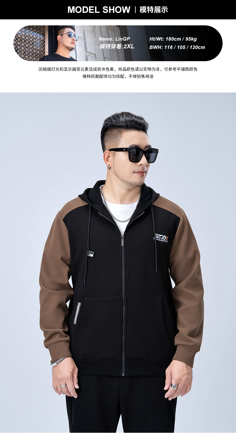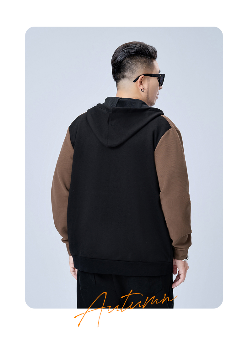 【新款DMH】大依优型大码连帽开衫卫衣外套拼接男宽松加肥加大码上衣夹克运动潮流