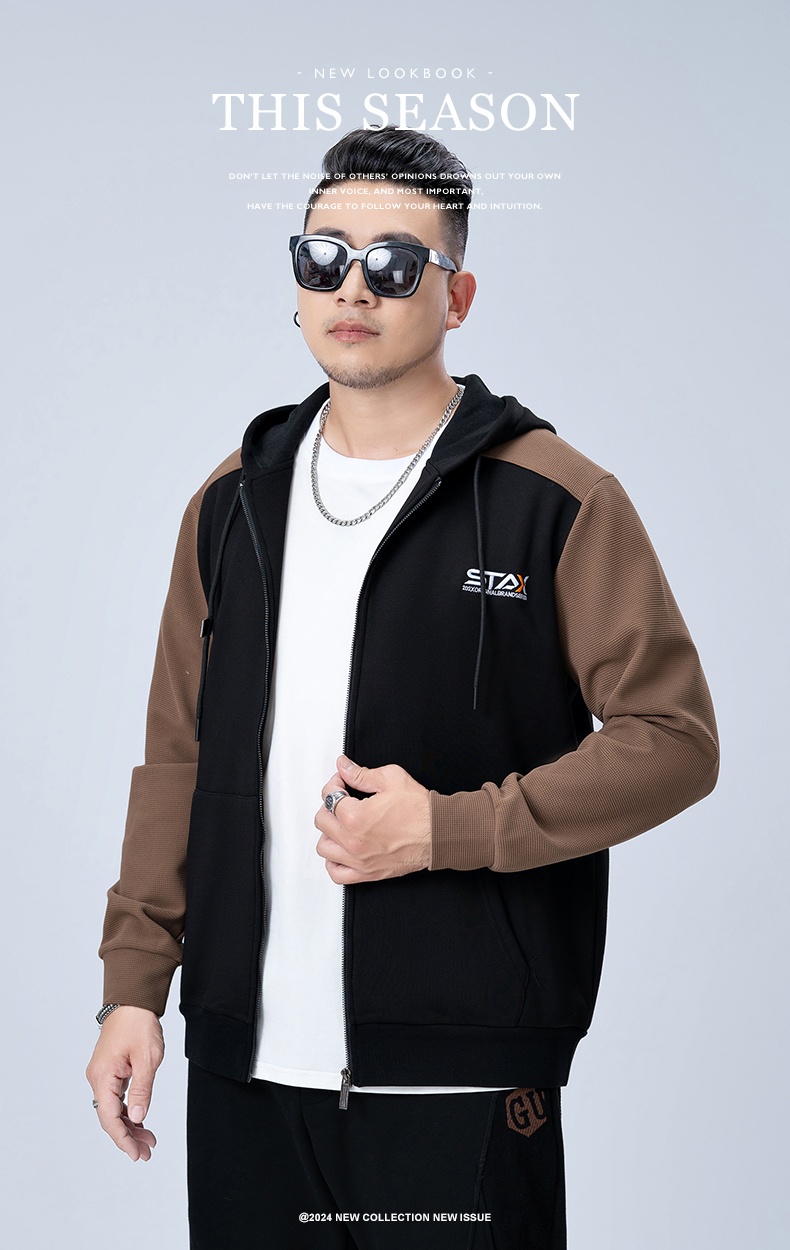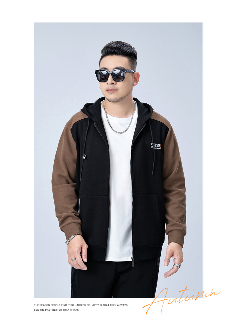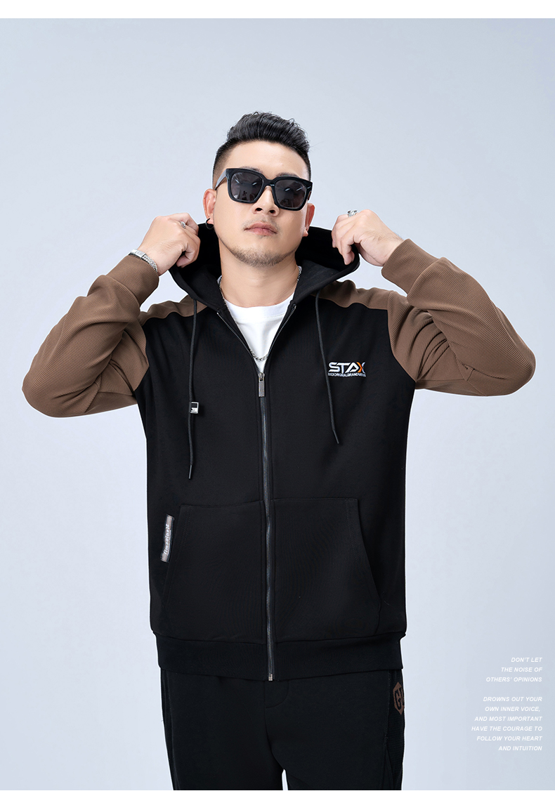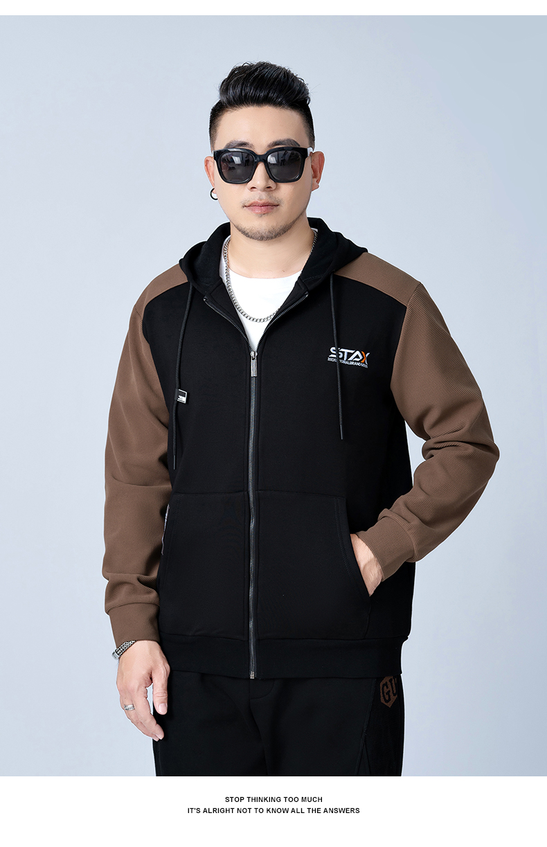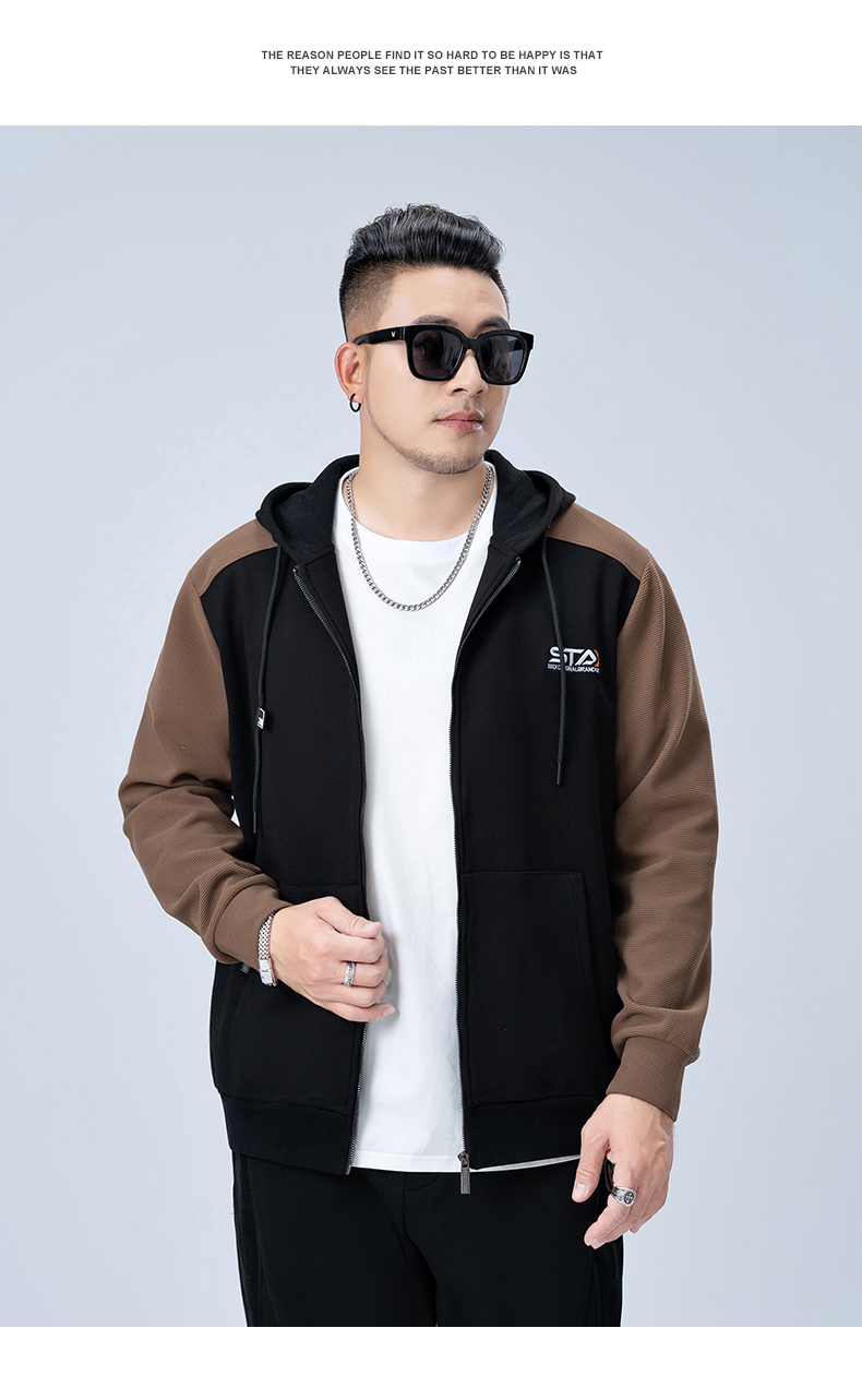 【新款DMH】大依优型大码连帽开衫卫衣外套拼接男宽松加肥加大码上衣夹克运动潮流