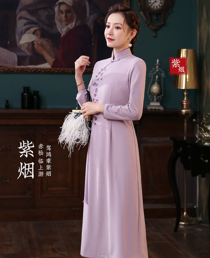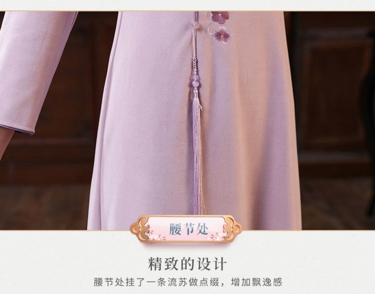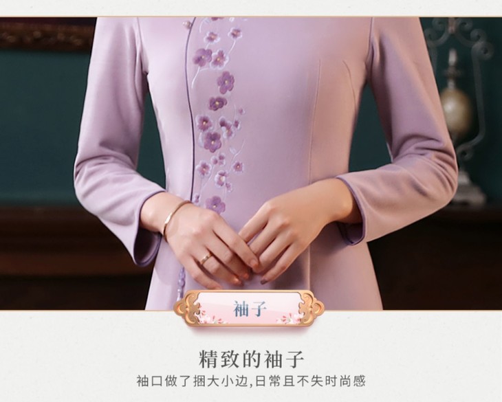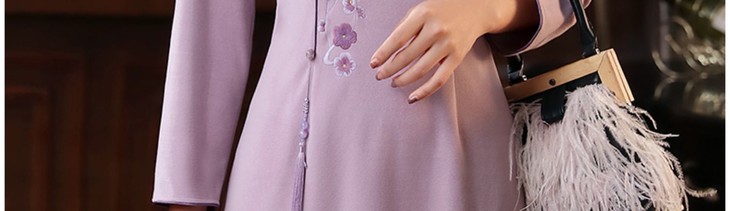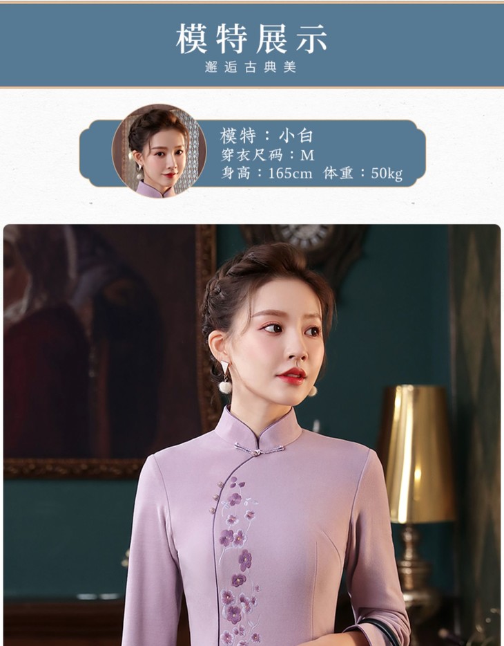 XGT2444高端新款改良弹力针织复古绣花中长A摆旗袍连衣裙