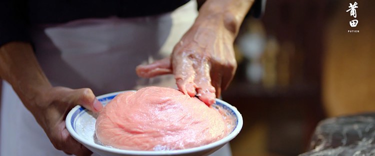 打好的肉泥要立刻进入下一个环节“擀皮”,