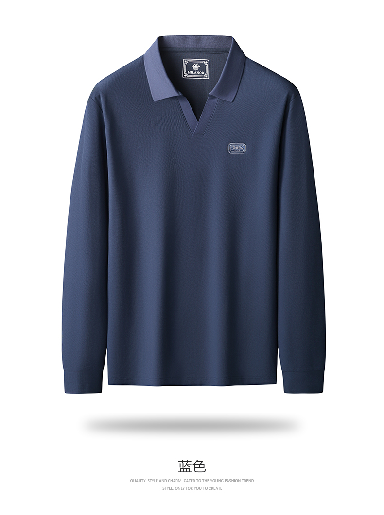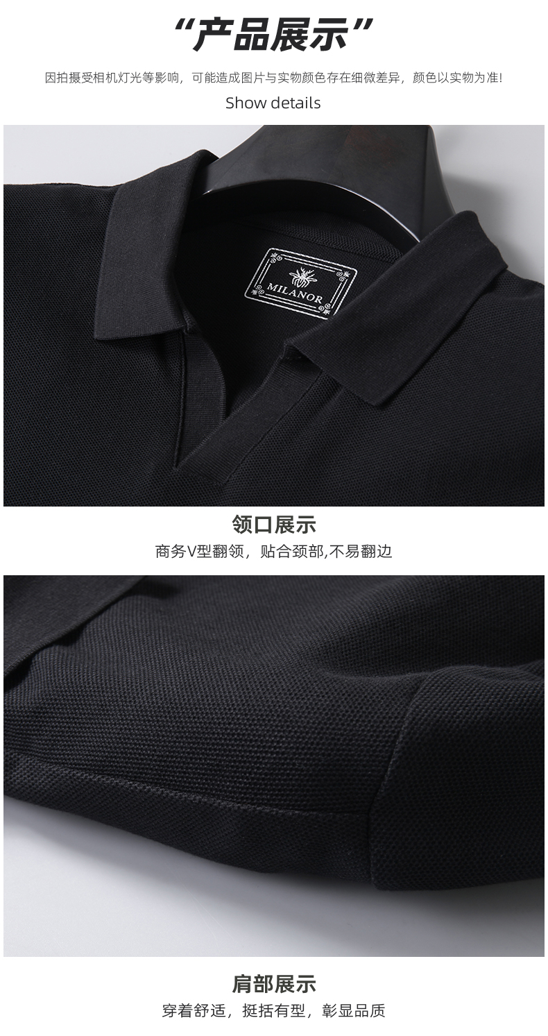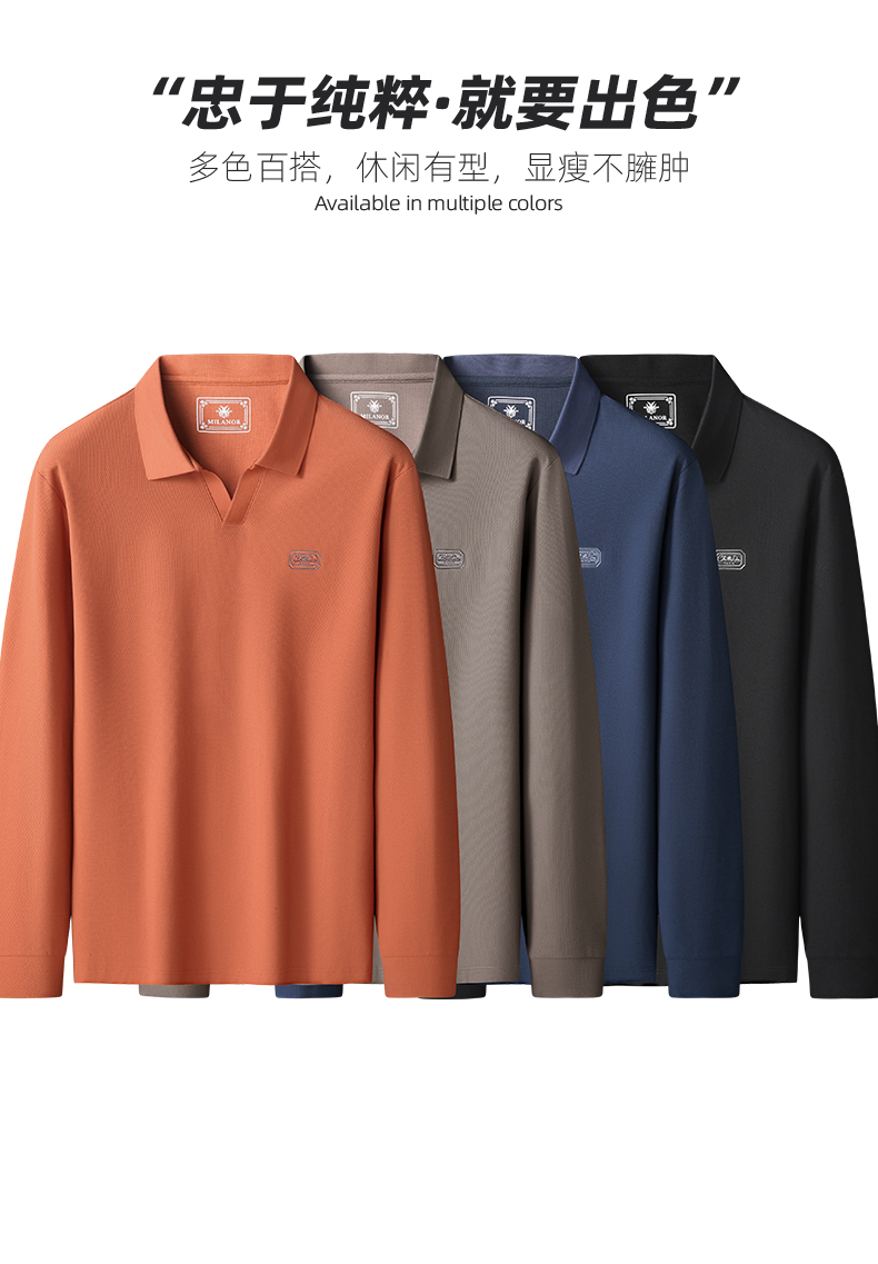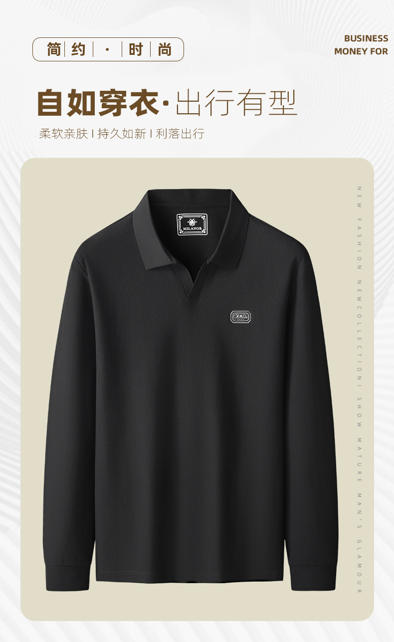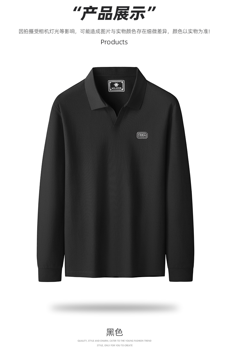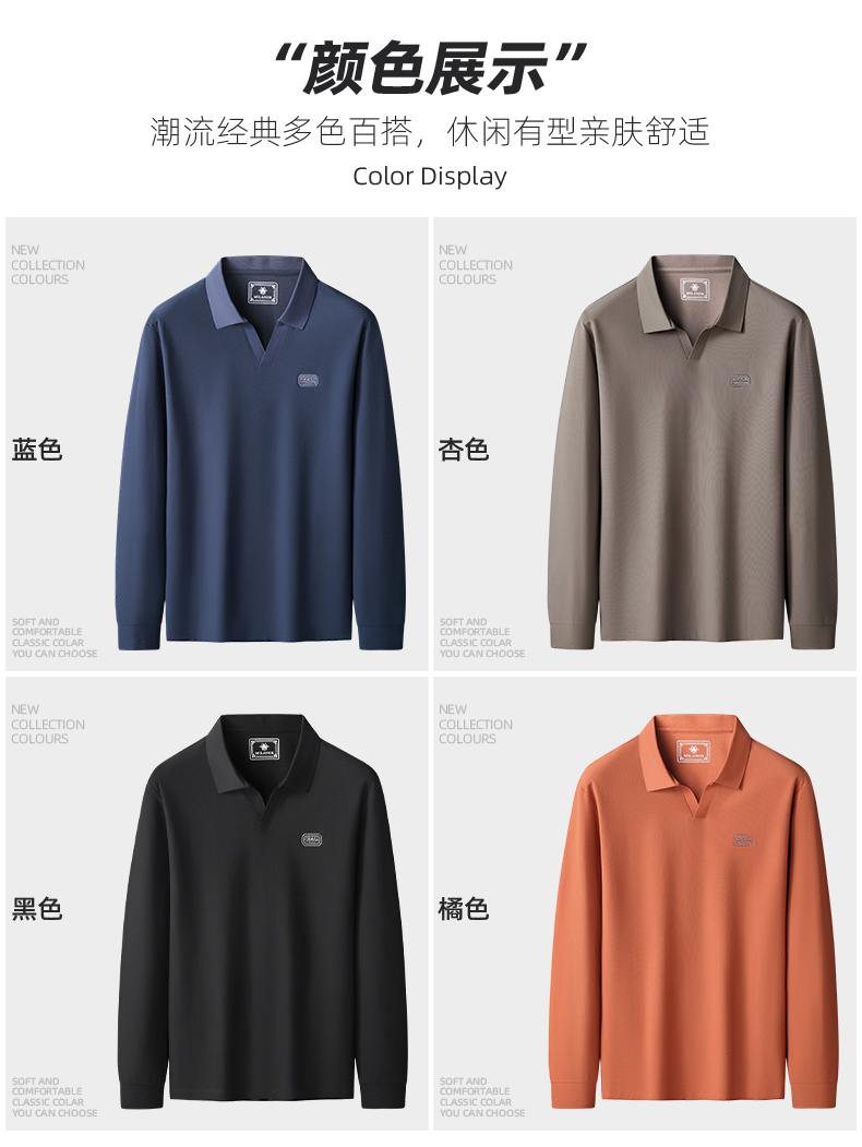 【V领】【新款DK】大依优型大码长袖Polo衫翻领男士加肥加大休闲大码男装宽松长袖体恤上衣
