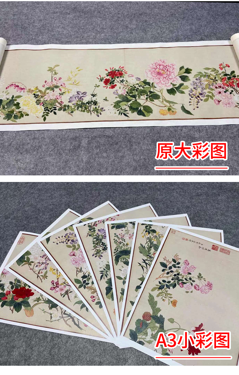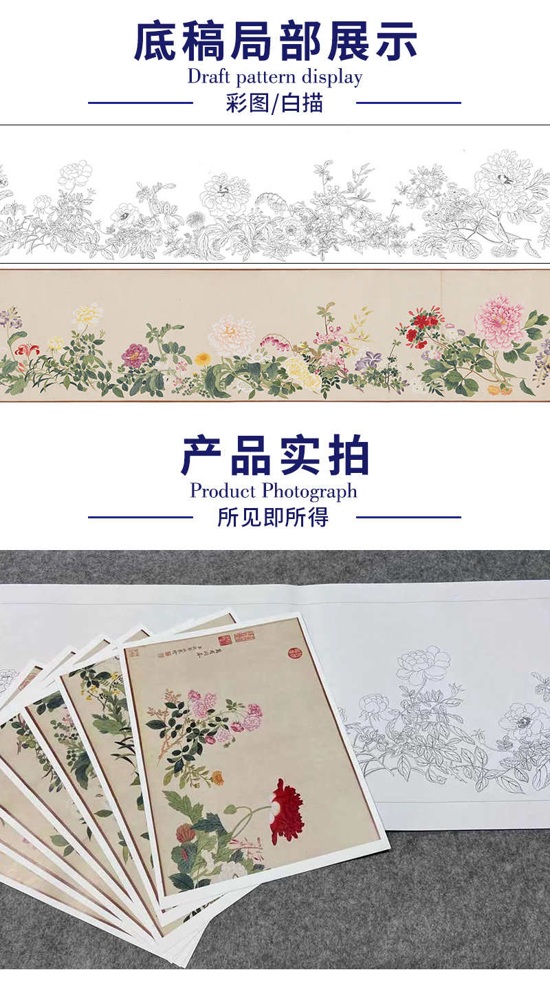 【长卷】工笔花鸟画白描底稿古画长卷钱维城《万有同春图》多种白描尺寸可选G033