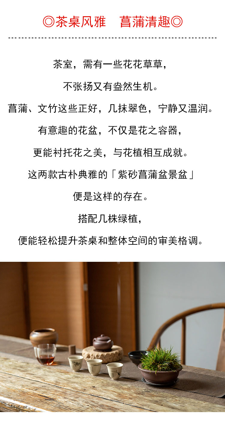 茶香记 紫砂菖蒲盆景盆 朱泥 圆碗(不含植物) 透气易养 古朴雅致 茶桌清趣