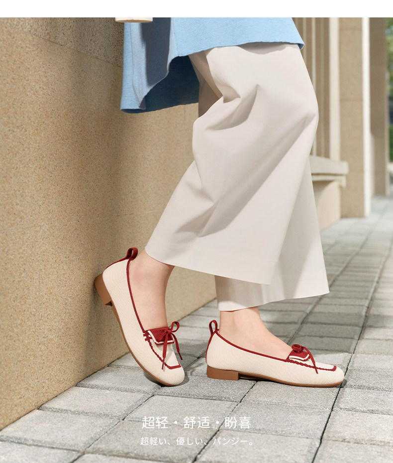 Pansy盼喜女鞋一脚蹬撞色蝴蝶结浅口软底通勤鞋 2026春新款 HD4318
