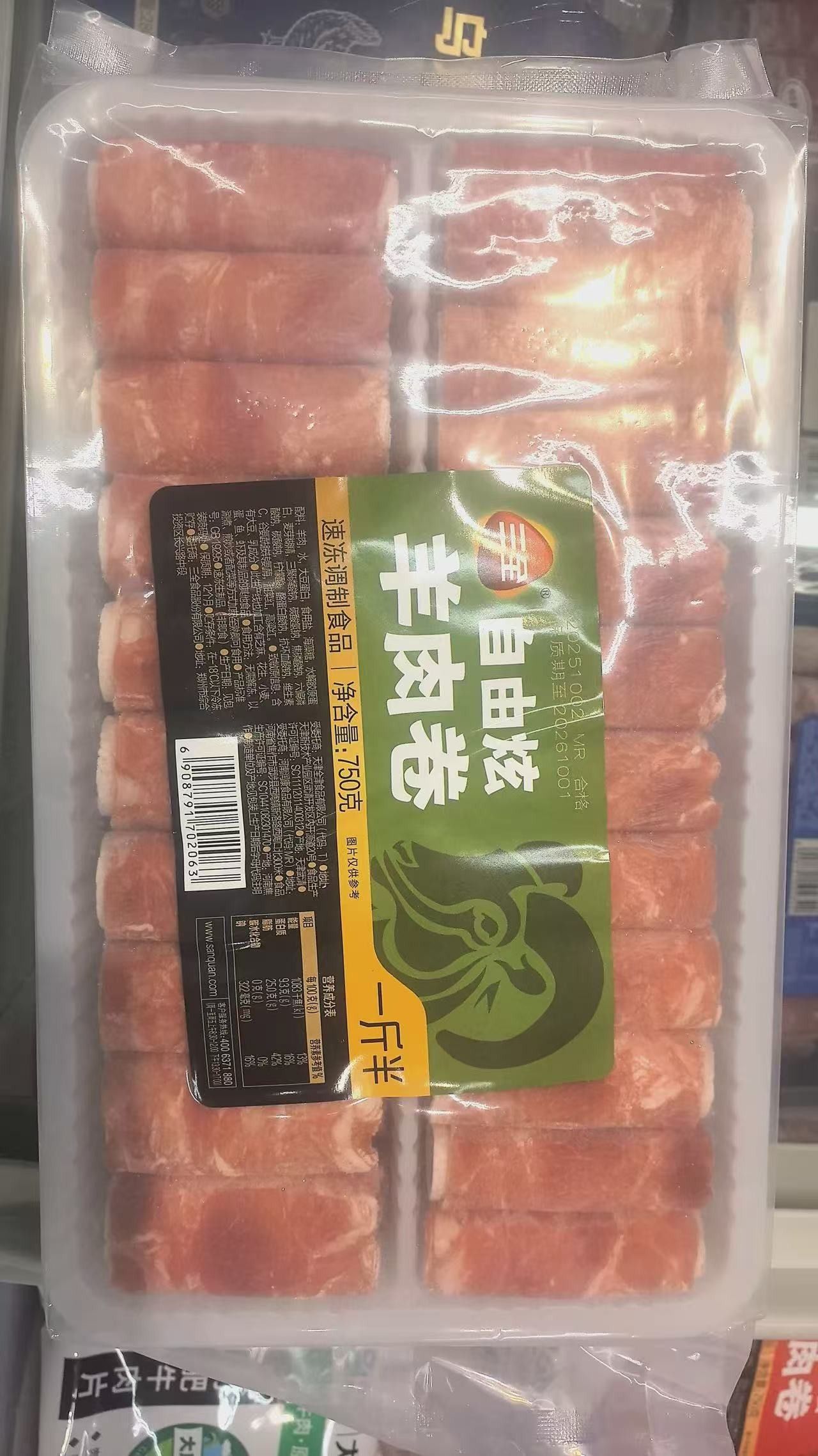 三全750g自由炫羊肉卷